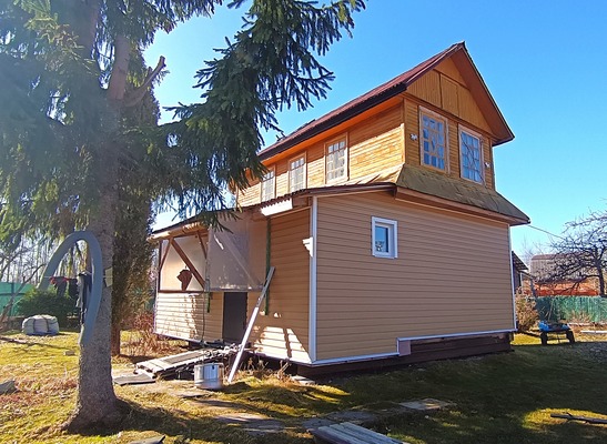 Арт. 133826818 Зимний двухэтажный бревенчатый дом 6х7 с новой отделкой, 2 комнаты, прихожая, кухня. Новая современная печь. Ухоженный участок 7.44 сотки, высокий, с ровным газоном. Яблони, посадки. Огорожен. Заезд для машины. Бревенчатая баня 2.5х5. Дом и земля в собственности. Сделано межевание. Рядом круглогодичные магазины. На въезде в массив есть Магнит и Пятерочка. До жд. станции Пупышево 20 мин. пешком.