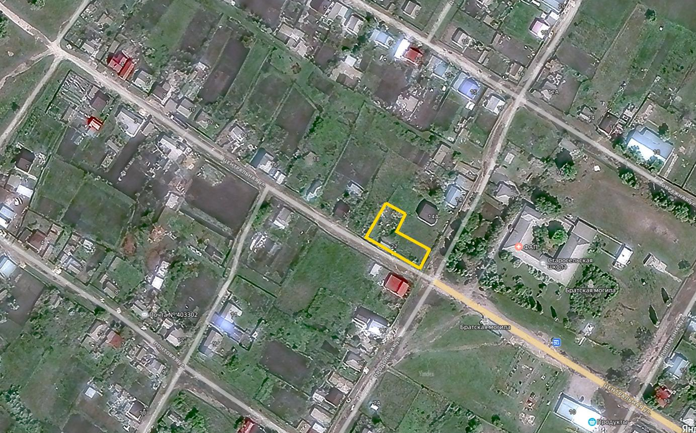 Продаётся участок, площадь 22 сотки. На участок проведены газ, электричество, пробурен водопровод, во дворе есть погреб. На территории участка два больших огорода. Участок расположен в центре села Староселье, в 2 минутах ходьбы остановка, школа, магазины. Развита транспортная доступность, с улицы Центральная. До центрального пляжа пешком 650 метров. В пешей доступности автобусная остановка (160 метров), автобус ходит до города Михайловка каждые 3 часа, с 7:00 до 18:00. На машине до города 10 минут. Собственник один. Кадастр участка 34:16:120004:1062 [#7536623#]