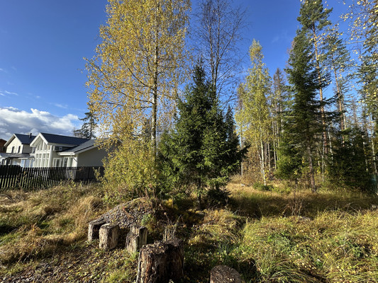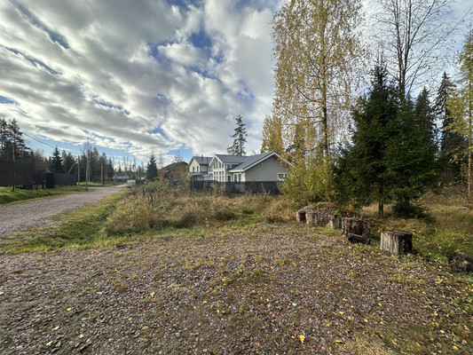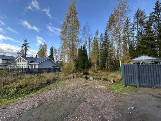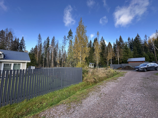 На участок организован заезд и подготовлена площадка для парковки автомобиля.Произведена расчистка участка от деревьев и корней, оставлены несколько взрослых берез и елей. Произведен дренаж участка с двух сторон.Позади участка прогулочный лес , метрах в 100 протекает небольшой ручей с чистой водой. По лесу можно выйти на пляж Большого Лебяжьего озера, прогулка займет около 10 минут.Поселок полностью застроен, один из последних свободных участков. Участок в форме трапеции , на вьезде 18 метров и расширяется в сторону леса до 26 метров, в длину 34 метра