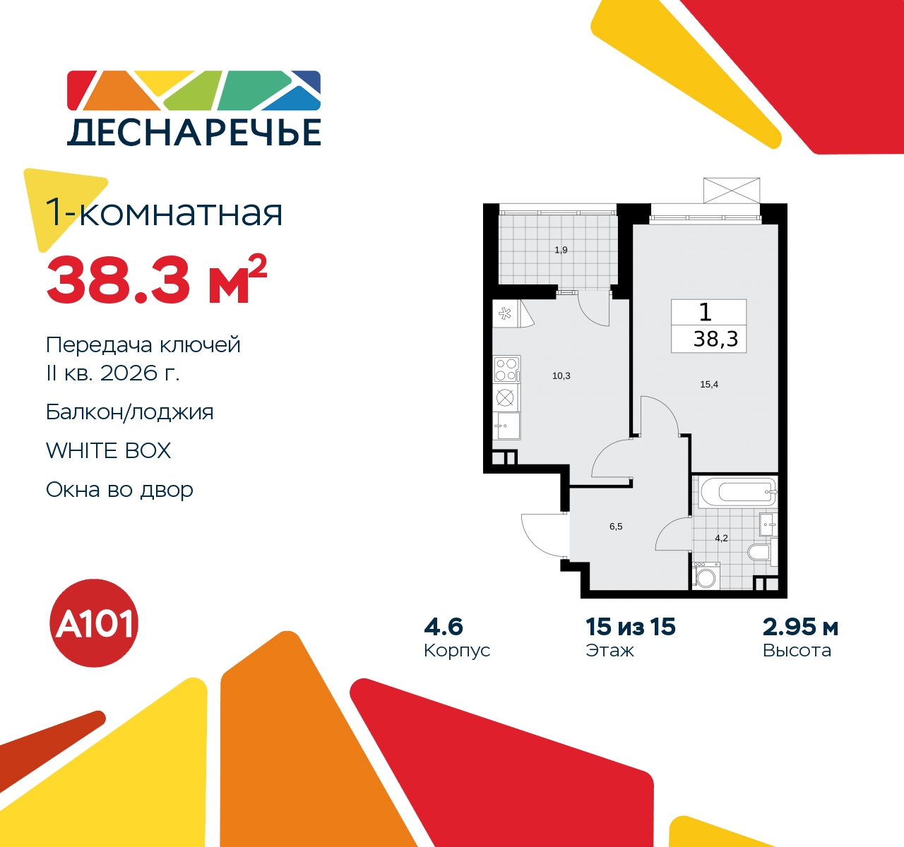 1-комн. квартира с отделкой в ЖК "Деснаречье" на 15 этаже. Общая площадь: 38.3 кв.м., жилая: 15.4 кв.м., площадь просторной кухни-столовой: 10.3 кв.м. Все окна выходят на одну сторону. В квартире одна лоджия, один совмещенный санузел. Высота потолков 2.95 м. Эта квартира будет сдана с дизайнеркой отделкой "под ключ". Специально для вас мы разработали несколько решений дизайнерской отделки. В отделке используются только современный высококлассные материалы, на все работы предоставляется гарантия. В таком случае вы оплачиваете отделку в сегодняшних ценах, а эту стоимость вы можете разнести в ипотечных платежах. Квартира находится в корпусе 4.6. Дом монолитный, одноподъездный, высотой 15 этажей. На этаже 10 квартир. В подъезде 1 пассажирский и 1 грузовой лифт. Начало строительства - 3 квартал 2023 года. Окончание строительства - 2 квартал 2026 года. Оформление сделки по договору долевого участия. Артикул квартиры по базе застройщика 88К-4.6-1443. Масштабный проект "Деснаречье" на юго-западе Москвы, который включает три новых района («квартала»), объединённые общей идеей – воплотить в реальность мечты современных жителей столицы об интересном, комфортном и разноплановом городском пространстве в окружении рек и лесов, словно сошедших с полотен русских живописцев: - «Берег» оценят все, кому близка водная стихия: плеск волн, солнечные блики и прогулки вдоль тихого течения речи. - «Лес» утопает в зелени парков и лесов. Здесь соблюдён идеальный баланс загородного спокойствия и столичного комфорта. - «Парк», самый энергичный и яркий, отличается высокой концентрацией пространств для спорта и творчества. Жилой комплекс "Деснаречье" расположится в 12 км от МКАД по современному Калужскому шоссе. Внешний облик зданий соответствует современному стилю и стандартам, характерным и для других популярных проектов ГК «А101»: сочетание контрастных тонов, большое количество остекления, в котором отражается небо, гармония с природным окружением. Весь город - в вашем районе. Находиться на территории «15-минутного города» значит иметь всё необходимое для полноценной жизни в шаговой доступности. Маршруты в районе «Деснаречье» выстроены так, чтобы добраться до магазинов, парков, школ, салонов услуг и других объектов можно было всего за несколько минут пешком или на велосипеде. Двор закрытый от машин – это тишина, комфорт и безопасность, поэтому все машино-места (включая «семейные» и увеличенные, с возможностью установки роллетных шкафов) находятся в подземном паркинге. В паркинги можно спуститься на лифте из любого подъезда или по лестнице. Рядом с «Деснаречьем» в 2027 году планируется открытие станции метро «Десна», до которой будет удобно добраться пешком или на велосипеде. Дорога на автомобиле до перехватывающих парковок станций «Ольховая» и «Прокшино» займёт около 10 минут. В процессе реализации проекта будут появляться новые маршруты общественного транспорта по районам. Уже сейчас на Калужском шоссе развита сеть наземного транспорта: два десятка автобусов и маршрутных такси прибывают на остановки с интервалом 5–10 минут. (AQID02264745)
