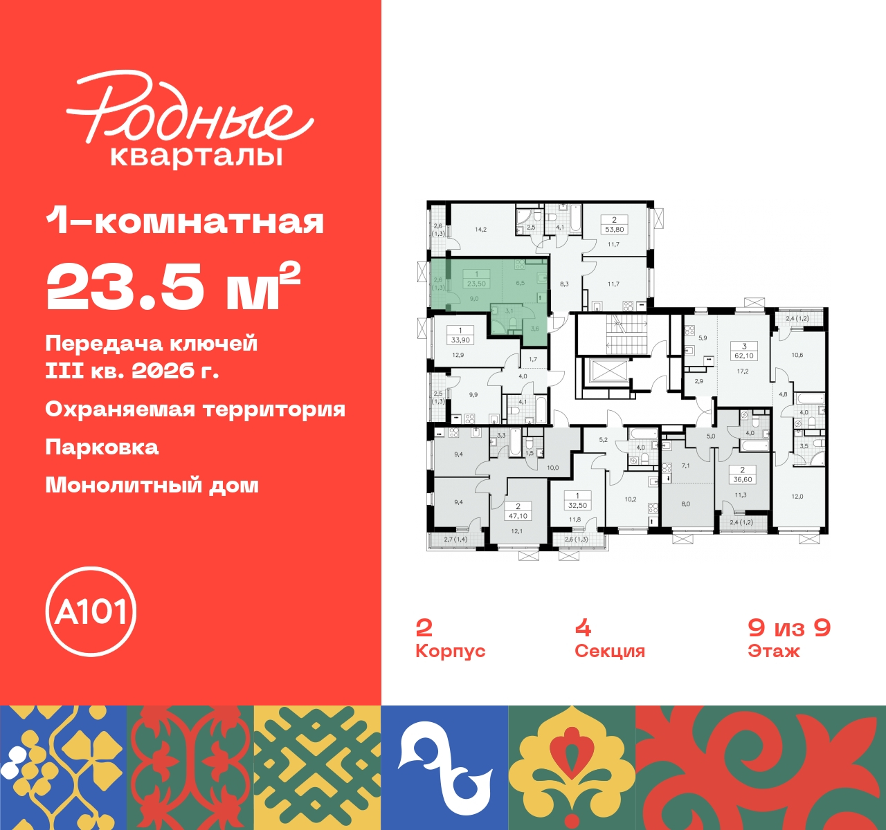 Просторная 1-комн. квартира-студия в ЖК "Родные кварталы" на 9 этаже. Квартира без отделки, новый владелец может сделать ремонт по своему дизайн-проекту. Общая площадь: 23.5 кв.м., площадь гостиной 15.5 кв.м., из которых 6.5 кв.м. выделено под кухонную зону. Все окна выходят на одну сторону. В квартире один балкон, один совмещенный санузел. Высота потолков 2.9 м. Дом монолитный, многоподъездный, высотой 9 этажей. Квартира находится в 4-й секции в корпусе 2. На этаже 7 квартир. В подъезде 1 грузовой лифт. Начало строительства - 4 квартал 2023 года. Окончание строительства - 3 квартал 2026 года. Оформление сделки по договору долевого участия. Артикул квартиры по базе застройщика 96К-2-199. Новый жилой комплекс "Родные кварталы" строится в уютной, экологически благополучной локации на юго-западе столицы. В ближайшем окружении – ухоженные малоэтажные посёлки и живописный Ульяновский лесопарк. Благодаря этому из окон откроются вдохновляющие виды, которые не исчезнут со временем за фасадами многоэтажек. Через весь район пройдёт главный бульвар, который свяжет набережную, жилые кварталы и площади в единое дружелюбное пространство, органично наполненное узнаваемыми элементами культурных традиций разных народов. В жилом комплексе создаются условия для комфортного отдыха и занятий спортом всех жителей. Здесь можно прогуляться и отдохнуть в лесопарке на берегу ручья, позаниматься на тренажёрах под открытым небом и спортивных площадках. Для малышей построят игровые комплексы, развивающие силу, координацию и ловкость. Всего в жилом комплексе будет оборудовано 6 га территории для спокойного отдыха и около 9 га — для активного. Подъезды в домах освещены в любое время суток, входы и вестибюль хорошо просматриваются с улицы. Витражное остекление обеспечивает приток естественного света днём, а вечером зажигаются светильники. В отделке домов используется сочетание вентилируемого фасада с облицовкой из фибробетонной плитки и штукатуркой. Комфортная высота домов соразмерна человеку и в среднем составляет 10 этажей. Все дома обеспечены собственными подземными паркингами. В них размещаются машино-места и кладовые. В паркинг или кладовую можно спуститься на лифте или по лестнице. В комплексе появятся бытовые сервисы, магазины, аптеки и другие торгово-бытовые объекты. В жилом районе «Родные кварталы» будут построены: - образовательный центр: школа на 1300 учеников и детский сад на 250 малышей, - два детских сада на 200 мест каждый (один из них сдаётся в 1-й очереди). В транспортной доступности уже работают: - школа № 41 и детский сад — по Боровскому шоссе, - школа № 2057 и детский сад — на запад от района, в дер. Марушкино. ЖК «Родные кварталы» строится в Новомосковском округе столицы, в 15 минутах на автомобиле от аэропорта «Внуково». Район обеспечен удобными выездами на три крупные современные автотрассы. Здесь уже работает и активно развивается система наземного общественного транспорта, включая междугородние рейсы. Интенсивное развитие локации обеспечивают две действующие станции крупных транспортных линий: метро (станция «Внуково») и МЦД (станция «Толстопальцево»). (AQID02295517)