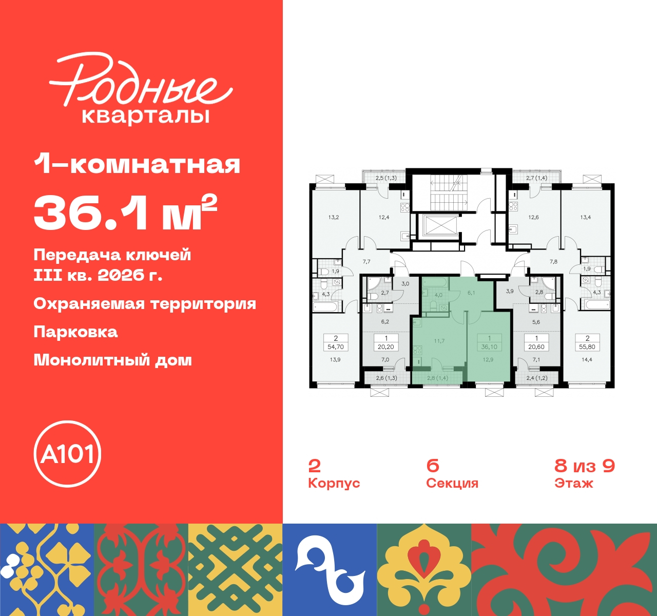 Однокомнатная квартира от застройщика в ЖК "Родные кварталы" на 8 этаже. Квартира без отделки, полностью готова к ремонту. Общая площадь: 36.1 кв.м., жилая: 12.9 кв.м., площадь просторной кухни-столовой: 11.7 кв.м. Все окна выходят на одну сторону. В квартире одна лоджия, один совмещенный санузел. Высота потолков 2.9 м. Имеется ниша под гардероб. Дом монолитный, многоподъездный, высотой 9 этажей. Квартира находится в 6-й секции в корпусе 2. На этаже 5 квартир. В подъезде 1 грузовой лифт. Начало строительства - 4 квартал 2023 года. Окончание строительства - 3 квартал 2026 года. Оформление сделки по договору долевого участия. Артикул квартиры по базе застройщика 96К-2-273. ПРЕДЛОЖЕНИЯ ОТ ЗАСТРОЙЩИКА В ОКТЯБРЕ 2025: Ипотека от 13,9 % для всех! На весь срок. "Семейная ипотека" вернулась. Ставка от 3,5 % на весь срок! Без удорожания! Выгодное ипотечное комбо: Ипотека от 2200 р./мес. и от 6 % после рождения ребёнка! Ипотека для всех "Держи пять!" - ставка 5 % на 2 года! *более подробную информацию по скидкам и акциям уточняйте в отделе продаж Новый жилой комплекс "Родные кварталы" строится в уютной, экологически благополучной локации на юго-западе столицы. В ближайшем окружении – ухоженные малоэтажные посёлки и живописный Ульяновский лесопарк. Благодаря этому из окон откроются вдохновляющие виды, которые не исчезнут со временем за фасадами многоэтажек. Через весь район пройдёт главный бульвар, который свяжет набережную, жилые кварталы и площади в единое дружелюбное пространство, органично наполненное узнаваемыми элементами культурных традиций разных народов. В жилом комплексе создаются условия для комфортного отдыха и занятий спортом всех жителей. Здесь можно прогуляться и отдохнуть в лесопарке на берегу ручья, позаниматься на тренажёрах под открытым небом и спортивных площадках. Для малышей построят игровые комплексы, развивающие силу, координацию и ловкость. Всего в жилом комплексе будет оборудовано 6 га территории для спокойного отдыха и около 9 га — для активного. Подъезды в домах освещены в любое время суток, входы и вестибюль хорошо просматриваются с улицы. Витражное остекление обеспечивает приток естественного света днём, а вечером зажигаются светильники. В отделке домов используется сочетание вентилируемого фасада с облицовкой из фибробетонной плитки и штукатуркой. Комфортная высота домов соразмерна человеку и в среднем составляет 10 этажей. Все дома обеспечены собственными подземными паркингами. В них размещаются машино-места и кладовые. В паркинг или кладовую можно спуститься на лифте или по лестнице. В комплексе появятся бытовые сервисы, магазины, аптеки и другие торгово-бытовые объекты. В жилом районе «Родные кварталы» будут построены: - образовательный центр: школа на 1300 учеников и детский сад на 250 малышей, - два детских сада на 200 мест каждый (один из них сдаётся в 1-й очереди). В транспортной доступности уже работают: - школа № 41 и детский сад — по Боровскому шоссе, - школа № 2057 и детский сад — на запад от района, в дер. Марушкино. ЖК «Родные кварталы» строится в Новомосковском округе столицы, в 15 минутах на автомобиле от аэропорта «Внуково». Район обеспечен удобными выездами на три крупные современные автотрассы. Здесь уже работает и активно развивается система наземного общественного транспорта, включая междугородние рейсы. Интенсивное развитие локации о