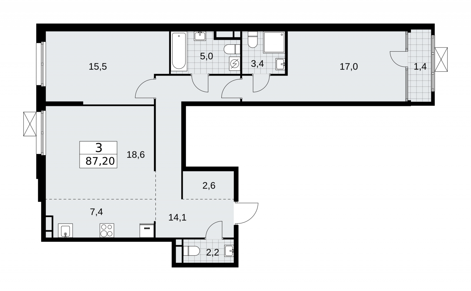 - Общая площадь 87.2 м²