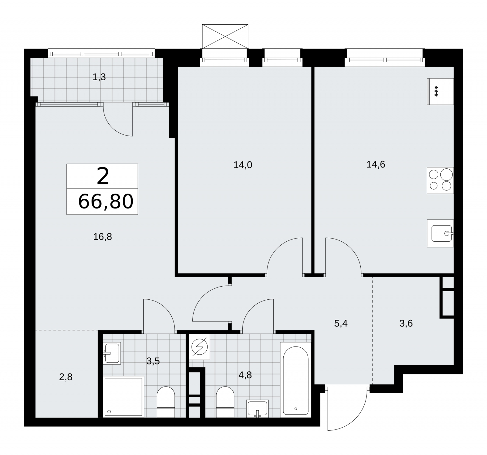- Общая площадь 66.8 м²