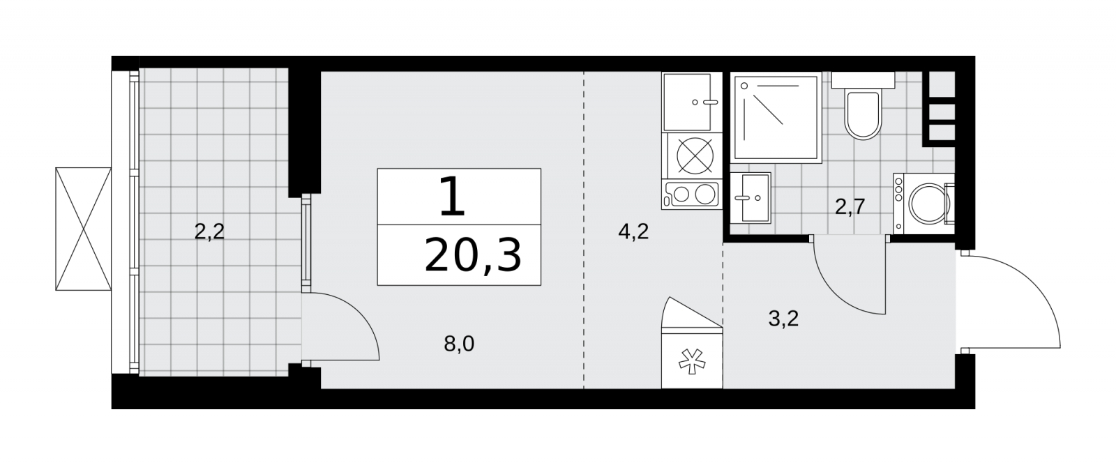 - Общая площадь 20.3 м²