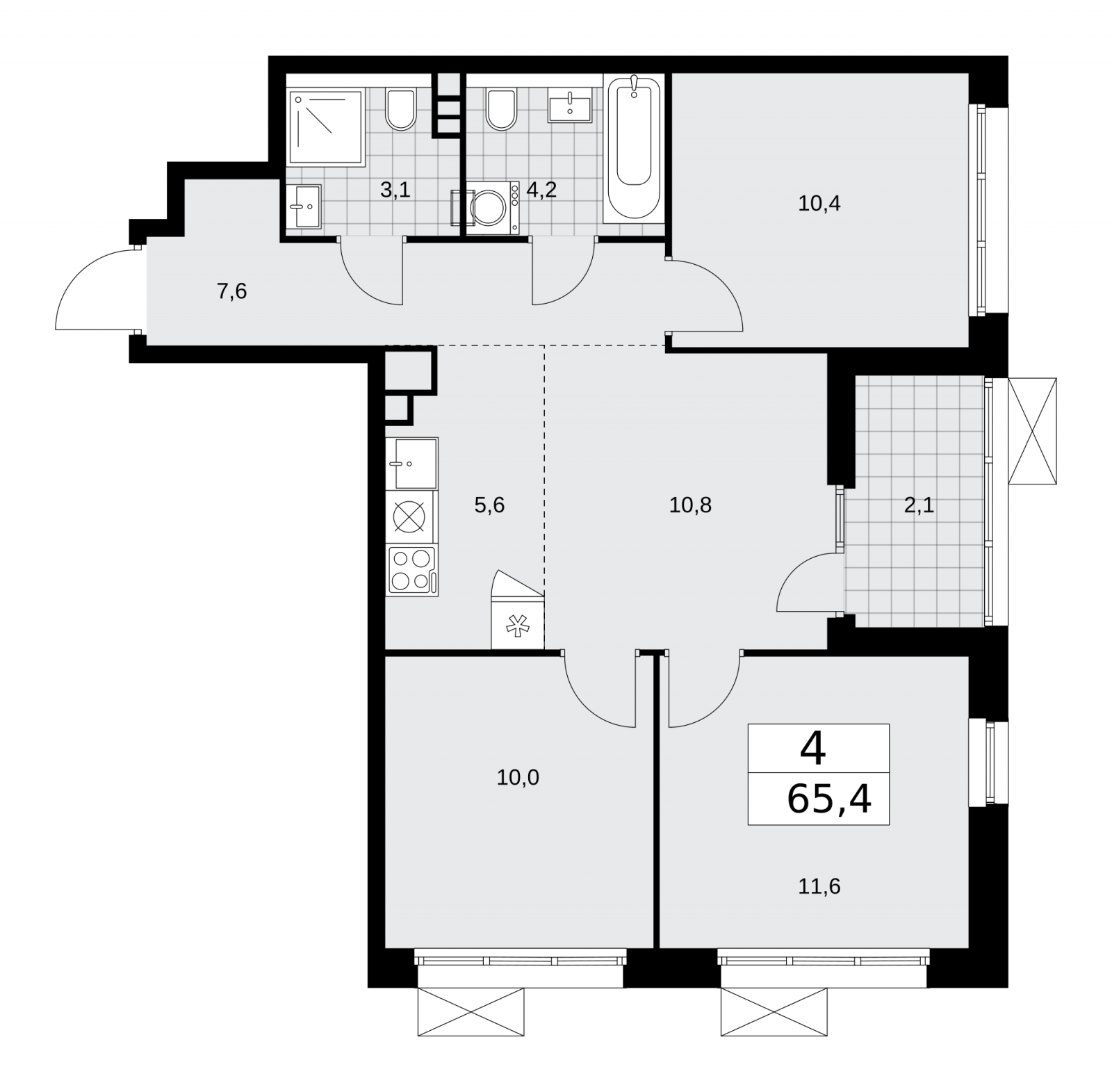 Продается 4-комн. квартира с европланировкой и отделкой в ЖК "Деснаречье" на 13 этаже. Общая площадь: 65.4 кв.м., жилая: 42.8 кв.м., суммарная площадь гостиной-столовой с кухонной зоной: 16.4 кв.м. Европланировка, зона гостиной комнаты объединена с кухней. Угловая квартира, окна oбecпeчивaют paвнoмepнoe ocвeщeниe в тeчeниe дня. В квартире одна лоджия, два совмещенных санузла. Высота потолков 2.95 м. Эта квартира будет сдана с дизайнеркой отделкой "под ключ". Специально для вас мы разработали несколько решений дизайнерской отделки. В отделке используются только современный высококлассные материалы, на все работы предоставляется гарантия. В таком случае вы оплачиваете отделку в сегодняшних ценах, а эту стоимость вы можете разнести в ипотечных платежах. Квартира находится в корпусе 4.9. Дом монолитный, одноподъездный, высотой 15 этажей. На этаже 10 квартир. В подъезде 1 пассажирский и 1 грузовой лифт. Начало строительства - 3 квартал 2023 года. Окончание строительства - 2 квартал 2026 года. Оформление сделки по договору долевого участия. Артикул квартиры по базе застройщика 88К-4.9-2124. ПРЕДЛОЖЕНИЯ ОТ ЗАСТРОЙЩИКА В ОКТЯБРЕ 2025: Ипотека от 13,9 % для всех! На весь срок. "Семейная ипотека" вернулась. Ставка от 3,5 % на весь срок! Без удорожания! Выгодное ипотечное комбо: Ипотека от 2200 р./мес. и от 6 % после рождения ребёнка! Ипотека для всех "Держи пять!" - ставка 5 % на 2 года! *более подробную информацию по скидкам и акциям уточняйте в отделе продаж Масштабный проект "Деснаречье" на юго-западе Москвы, который включает три новых района («квартала»), объединённые общей идеей – воплотить в реальность мечты современных жителей столицы об интересном, комфортном и разноплановом городском пространстве в окружении рек и лесов, словно сошедших с полотен русских живописцев: - «Берег» оценят все, кому близка водная стихия: плеск волн, солнечные блики и прогулки вдоль тихого течения речи. - «Лес» утопает в зелени парков и лесов. Здесь соблюдён идеальный баланс загородного спокойствия и столичного комфорта. - «Парк», самый энергичный и яркий, отличается высокой концентрацией пространств для спорта и творчества. Жилой комплекс "Деснаречье" расположится в 12 км от МКАД по современному Калужскому шоссе. Внешний облик зданий соответствует современному стилю и стандартам, характерным и для других популярных проектов ГК «А101»: сочетание контрастных тонов, большое количество остекления, в котором отражается небо, гармония с природным окружением. Весь город - в вашем районе. Находиться на территории «15-минутного города» значит иметь всё необходимое для полноценной жизни в шаговой доступности. Маршруты в районе «Деснаречье» выстроены так, чтобы добраться до магазинов, парков, школ, салонов услуг и других объектов можно было всего за несколько минут пешком или на велосипеде. Двор закрытый от машин – это тишина, комфорт и безопасность, поэтому все машино-места (включая «семейные» и увеличенные, с возможностью установки роллетных шкафов) находятся в подземном паркинге. В паркинги можно спуститься на лифте из любого подъезда или по лестнице. Рядом с «Деснаречьем» в 2027 году планируется открытие станции метро «Десна», до которой будет удобно добраться пешком или на велосипеде. Дорога на автомобиле до перехватывающих парковок станций «Ольховая» и «Прокшино» займёт около 10 минут. В процессе реализации проек