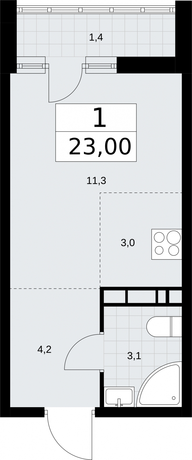 1-комн. квартира-студия от застройщика с отделкой в ЖК "Родные кварталы" на 4 этаже. Общая площадь: 23 кв.м., площадь гостиной 14.3 кв.м., из которых 3 кв.м. выделено под кухонную зону. Все окна выходят на одну сторону. В квартире один балкон, один совмещенный санузел. Высота потолков 2.9 м. Квартира находится в корпусе 1.1. Дом монолитный, одноподъездный, высотой 10 этажей. На этаже 11 квартир. В подъезде 1 пассажирский и 1 грузовой лифт. Начало строительства - 4 квартал 2023 года. Окончание строительства - 4 квартал 2026 года. Оформление сделки по договору долевого участия. Артикул квартиры по базе застройщика 96К-1.1-32. ПРЕДЛОЖЕНИЯ ОТ ЗАСТРОЙЩИКА В ОКТЯБРЕ 2025: Ипотека от 13,9 % для всех! На весь срок. "Семейная ипотека" вернулась. Ставка от 3,5 % на весь срок! Без удорожания! Выгодное ипотечное комбо: Ипотека от 2200 р./мес. и от 6 % после рождения ребёнка! Ипотека для всех "Держи пять!" - ставка 5 % на 2 года! *более подробную информацию по скидкам и акциям уточняйте в отделе продаж Новый жилой комплекс "Родные кварталы" строится в уютной, экологически благополучной локации на юго-западе столицы. В ближайшем окружении – ухоженные малоэтажные посёлки и живописный Ульяновский лесопарк. Благодаря этому из окон откроются вдохновляющие виды, которые не исчезнут со временем за фасадами многоэтажек. Через весь район пройдёт главный бульвар, который свяжет набережную, жилые кварталы и площади в единое дружелюбное пространство, органично наполненное узнаваемыми элементами культурных традиций разных народов. В жилом комплексе создаются условия для комфортного отдыха и занятий спортом всех жителей. Здесь можно прогуляться и отдохнуть в лесопарке на берегу ручья, позаниматься на тренажёрах под открытым небом и спортивных площадках. Для малышей построят игровые комплексы, развивающие силу, координацию и ловкость. Всего в жилом комплексе будет оборудовано 6 га территории для спокойного отдыха и около 9 га — для активного. Подъезды в домах освещены в любое время суток, входы и вестибюль хорошо просматриваются с улицы. Витражное остекление обеспечивает приток естественного света днём, а вечером зажигаются светильники. В отделке домов используется сочетание вентилируемого фасада с облицовкой из фибробетонной плитки и штукатуркой. Комфортная высота домов соразмерна человеку и в среднем составляет 10 этажей. Все дома обеспечены собственными подземными паркингами. В них размещаются машино-места и кладовые. В паркинг или кладовую можно спуститься на лифте или по лестнице. В комплексе появятся бытовые сервисы, магазины, аптеки и другие торгово-бытовые объекты. В жилом районе «Родные кварталы» будут построены: - образовательный центр: школа на 1300 учеников и детский сад на 250 малышей, - два детских сада на 200 мест каждый (один из них сдаётся в 1-й очереди). В транспортной доступности уже работают: - школа № 41 и детский сад — по Боровскому шоссе, - школа № 2057 и детский сад — на запад от района, в дер. Марушкино. ЖК «Родные кварталы» строится в Новомосковском округе столицы, в 15 минутах на автомобиле от аэропорта «Внуково». Район обеспечен удобными выездами на три крупные современные автотрассы. Здесь уже работает и активно развивается система наземного общественного транспорта, включая междугородние рейсы. Интенсивное развитие локации обеспечивают две действующие станции крупных тра