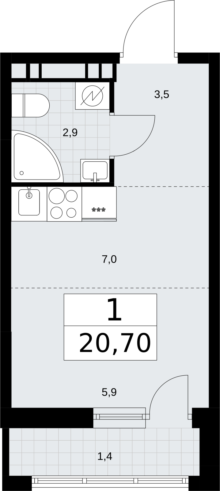 1-комн. квартира-студия от застройщика в ЖК "Родные кварталы" на 10 этаже. Квартира без отделки, после получения ключей можно делать ремонт. Общая площадь: 20.7 кв.м., площадь гостиной 12.9 кв.м., из которых 7 кв.м. выделено под кухонную зону. Все окна выходят на одну сторону. В квартире один балкон, один совмещенный санузел. Высота потолков 2.95 м. Дом монолитный, черырехподъездный, высотой 10 этажей. Квартира находится в 4-й секции в корпусе 3.1. На этаже 6 квартир. В подъезде 1 грузовой лифт. Начало строительства - 2 квартал 2024 года. Окончание строительства - 3 квартал 2026 года. Оформление сделки по договору долевого участия. Артикул квартиры по базе застройщика 96К-3.1-186. ПРЕДЛОЖЕНИЯ ОТ ЗАСТРОЙЩИКА В ОКТЯБРЕ 2025: Ипотека от 13,9 % для всех! На весь срок. "Семейная ипотека" вернулась. Ставка от 3,5 % на весь срок! Без удорожания! Выгодное ипотечное комбо: Ипотека от 2200 р./мес. и от 6 % после рождения ребёнка! Ипотека для всех "Держи пять!" - ставка 5 % на 2 года! *более подробную информацию по скидкам и акциям уточняйте в отделе продаж Новый жилой комплекс "Родные кварталы" строится в уютной, экологически благополучной локации на юго-западе столицы. В ближайшем окружении – ухоженные малоэтажные посёлки и живописный Ульяновский лесопарк. Благодаря этому из окон откроются вдохновляющие виды, которые не исчезнут со временем за фасадами многоэтажек. Через весь район пройдёт главный бульвар, который свяжет набережную, жилые кварталы и площади в единое дружелюбное пространство, органично наполненное узнаваемыми элементами культурных традиций разных народов. В жилом комплексе создаются условия для комфортного отдыха и занятий спортом всех жителей. Здесь можно прогуляться и отдохнуть в лесопарке на берегу ручья, позаниматься на тренажёрах под открытым небом и спортивных площадках. Для малышей построят игровые комплексы, развивающие силу, координацию и ловкость. Всего в жилом комплексе будет оборудовано 6 га территории для спокойного отдыха и около 9 га — для активного. Подъезды в домах освещены в любое время суток, входы и вестибюль хорошо просматриваются с улицы. Витражное остекление обеспечивает приток естественного света днём, а вечером зажигаются светильники. В отделке домов используется сочетание вентилируемого фасада с облицовкой из фибробетонной плитки и штукатуркой. Комфортная высота домов соразмерна человеку и в среднем составляет 10 этажей. Все дома обеспечены собственными подземными паркингами. В них размещаются машино-места и кладовые. В паркинг или кладовую можно спуститься на лифте или по лестнице. В комплексе появятся бытовые сервисы, магазины, аптеки и другие торгово-бытовые объекты. В жилом районе «Родные кварталы» будут построены: - образовательный центр: школа на 1300 учеников и детский сад на 250 малышей, - два детских сада на 200 мест каждый (один из них сдаётся в 1-й очереди). В транспортной доступности уже работают: - школа № 41 и детский сад — по Боровскому шоссе, - школа № 2057 и детский сад — на запад от района, в дер. Марушкино. ЖК «Родные кварталы» строится в Новомосковском округе столицы, в 15 минутах на автомобиле от аэропорта «Внуково». Район обеспечен удобными выездами на три крупные современные автотрассы. Здесь уже работает и активно развивается система наземного общественного транспорта, включая междугородние рейсы. Интенсивное развитие ло