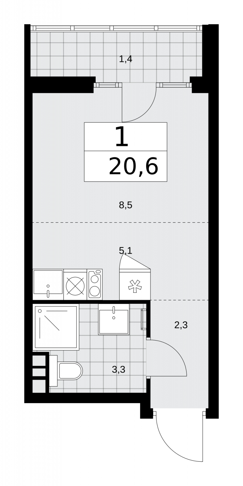 Продается 1-комн. квартира-студия от застройщика с отделкой в ЖК "Деснаречье" на 9 этаже. Общая площадь: 20.6 кв.м., площадь гостиной 13.6 кв.м., из которых 5.1 кв.м. выделено под кухонную зону. Все окна выходят на одну сторону. В квартире один балкон, один совмещенный санузел. Высота потолков 2.99 м. Эта квартира будет сдана с дизайнеркой отделкой "под ключ". Специально для вас мы разработали несколько решений дизайнерской отделки. В отделке используются только современный высококлассные материалы, на все работы предоставляется гарантия. В таком случае вы оплачиваете отделку в сегодняшних ценах, а эту стоимость вы можете разнести в ипотечных платежах. Дом монолитный, черырехподъездный, переменной этажности, от 12 до 15 этажей. Квартира находится в 4-й секции высотой 15 этажей в корпусе 4.5. На этаже 6 квартир. В подъезде 1 пассажирский и 1 грузовой лифт. Начало строительства - 3 квартал 2023 года. Окончание строительства - 2 квартал 2026 года. Оформление сделки по договору долевого участия. Артикул квартиры по базе застройщика 88К-4.5-1266. ПРЕДЛОЖЕНИЯ ОТ ЗАСТРОЙЩИКА В ОКТЯБРЕ 2025: Ипотека от 13,9 % для всех! На весь срок. "Семейная ипотека" вернулась. Ставка от 3,5 % на весь срок! Без удорожания! Выгодное ипотечное комбо: Ипотека от 2200 р./мес. и от 6 % после рождения ребёнка! Ипотека для всех "Держи пять!" - ставка 5 % на 2 года! *более подробную информацию по скидкам и акциям уточняйте в отделе продаж Масштабный проект "Деснаречье" на юго-западе Москвы, который включает три новых района («квартала»), объединённые общей идеей – воплотить в реальность мечты современных жителей столицы об интересном, комфортном и разноплановом городском пространстве в окружении рек и лесов, словно сошедших с полотен русских живописцев: - «Берег» оценят все, кому близка водная стихия: плеск волн, солнечные блики и прогулки вдоль тихого течения речи. - «Лес» утопает в зелени парков и лесов. Здесь соблюдён идеальный баланс загородного спокойствия и столичного комфорта. - «Парк», самый энергичный и яркий, отличается высокой концентрацией пространств для спорта и творчества. Жилой комплекс "Деснаречье" расположится в 12 км от МКАД по современному Калужскому шоссе. Внешний облик зданий соответствует современному стилю и стандартам, характерным и для других популярных проектов ГК «А101»: сочетание контрастных тонов, большое количество остекления, в котором отражается небо, гармония с природным окружением. Весь город - в вашем районе. Находиться на территории «15-минутного города» значит иметь всё необходимое для полноценной жизни в шаговой доступности. Маршруты в районе «Деснаречье» выстроены так, чтобы добраться до магазинов, парков, школ, салонов услуг и других объектов можно было всего за несколько минут пешком или на велосипеде. Двор закрытый от машин – это тишина, комфорт и безопасность, поэтому все машино-места (включая «семейные» и увеличенные, с возможностью установки роллетных шкафов) находятся в подземном паркинге. В паркинги можно спуститься на лифте из любого подъезда или по лестнице. Рядом с «Деснаречьем» в 2027 году планируется открытие станции метро «Десна», до которой будет удобно добраться пешком или на велосипеде. Дорога на автомобиле до перехватывающих парковок станций «Ольховая» и «Прокшино» займёт около 10 минут. В процессе реализации проекта будут появляться новые маршруты об