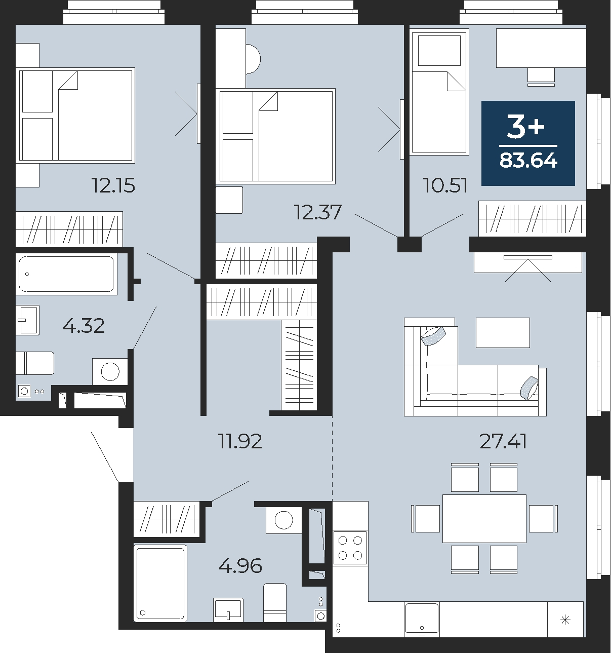 Продается 3-комн. квартира с предчистовой отделкой в ЖК "Прео" на 11 этаже. Общая площадь: 83.64 кв.м., жилая: 35.03 кв.м., площадь просторной кухни-столовой: 27.41 кв.м. Угловая квартира, окна oбecпeчивaют paвнoмepнoe ocвeщeниe в тeчeниe дня. В квартире два совмещенных санузла. Высота потолков 2.7 м. Квартира находится в корпусе 204. Дом монолитный, одноподъездный, высотой 24 этажа. На этаже 14 квартир. В подъезде 2 грузовых лифта. В настоящее время строительство завершено, дом сдан в 4 квартале 2024 года. Оформление сделки по договору купли-продажи. Преображенский — один из самых привлекательных районов для жизни! Это полностью самостоятельный жилой район с точки зрения инфраструктуры. Преображенский находится между Московским и Червишевским трактами в квартале улиц Закалужская — Вьюжная — Александра Протозанова. Не нужно ждать, когда появится инфраструктура — переезжайте на всё готовое. Вблизи расположены действующие школа и детский сад. В этом году откроется еще один сад, а в следующем году — школа. По соседству с Преображенским запланировано строительство городского парка «Комарово» площадью 38 гектар. За 10 минут можно доехать на автомобиле до крупных ТРЦ: «Лента», «Кристалл», «Леруа Мерлен», «Метро» и «Ашан». С 2018 года в районе открыт Соседский центр — пространство, созданное для формирования добрососедской среды, совместного досуга, общения и реализации соседских инициатив. Здесь проходят встречи соседей, а также сами жители района организовывают мероприятия. Организатором такого события может стать любой желающий. В квартирах выполнена качественная предчистовая отделка. Гладкие стены с финишным выравниванием по маякам. Ровный потолок для установки натяжного потолка. Установлены пятикамерные окна с двойным стеклопакетом (3 стекла). Дизайнерские холлы с видеонаблюдением, безбарьерным и прозрачным входом – всегда светло и спокойно. На первом этаже есть просторные колясочные, где все жители могут оставлять свои коляски и велосипеды. В Преображенском есть всё, что нужно для активного отдыха и занятий спортом. Мы сделали большое футбольное поле с безопасным покрытием. Также установили хоккейный корт, который оборудован по всем необходимым стандартам. Во дворах можно делать упражнения на специальных площадках с турниками. Весь район мы обустроили велодорожками, которые связаны в единый маршрут. У нас есть сухие фонтаны, бьющие из земли, деревья, веревки, сетки, скалодром, газон, песок и резинка — осталось просто дать своему ребенку право на свободную игру. По-настоящему хорошие дворы — это те, которые дети предпочитают соцсетям и телевизору. Аккредитация в банках: ПАО «Газпромбанк», ОАО «Альфа-Банк», ПАО «Банк Уралсиб», «Сбербанк России», ПАО Банк «ВТБ» и других. (AQID02353812)