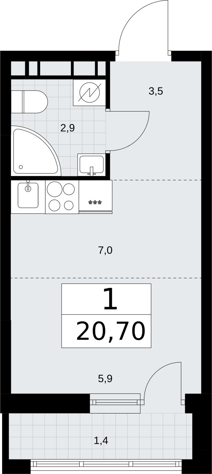 Однокомнатная квартира-студия в ЖК "Родные кварталы" на 7 этаже. Квартира без отделки, новый владелец может сделать ремонт по индивидуальному дизайн-проекту. Общая площадь: 20.7 кв.м., площадь гостиной 12.9 кв.м., из которых 7 кв.м. выделено под кухонную зону. Все окна выходят на одну сторону. В квартире один балкон, один совмещенный санузел. Высота потолков 2.95 м. Дом монолитный, черырехподъездный, высотой 10 этажей. Квартира находится в 4-й секции в корпусе 3.1. На этаже 6 квартир. В подъезде 1 грузовой лифт. Начало строительства - 2 квартал 2024 года. Окончание строительства - 3 квартал 2026 года. Оформление сделки по договору долевого участия. Артикул квартиры по базе застройщика 96К-3.1-168. ПРЕДЛОЖЕНИЯ ОТ ЗАСТРОЙЩИКА В ОКТЯБРЕ 2025: Ипотека от 13,9 % для всех! На весь срок. "Семейная ипотека" вернулась. Ставка от 3,5 % на весь срок! Без удорожания! Выгодное ипотечное комбо: Ипотека от 2200 р./мес. и от 6 % после рождения ребёнка! Ипотека для всех "Держи пять!" - ставка 5 % на 2 года! *более подробную информацию по скидкам и акциям уточняйте в отделе продаж Новый жилой комплекс "Родные кварталы" строится в уютной, экологически благополучной локации на юго-западе столицы. В ближайшем окружении – ухоженные малоэтажные посёлки и живописный Ульяновский лесопарк. Благодаря этому из окон откроются вдохновляющие виды, которые не исчезнут со временем за фасадами многоэтажек. Через весь район пройдёт главный бульвар, который свяжет набережную, жилые кварталы и площади в единое дружелюбное пространство, органично наполненное узнаваемыми элементами культурных традиций разных народов. В жилом комплексе создаются условия для комфортного отдыха и занятий спортом всех жителей. Здесь можно прогуляться и отдохнуть в лесопарке на берегу ручья, позаниматься на тренажёрах под открытым небом и спортивных площадках. Для малышей построят игровые комплексы, развивающие силу, координацию и ловкость. Всего в жилом комплексе будет оборудовано 6 га территории для спокойного отдыха и около 9 га — для активного. Подъезды в домах освещены в любое время суток, входы и вестибюль хорошо просматриваются с улицы. Витражное остекление обеспечивает приток естественного света днём, а вечером зажигаются светильники. В отделке домов используется сочетание вентилируемого фасада с облицовкой из фибробетонной плитки и штукатуркой. Комфортная высота домов соразмерна человеку и в среднем составляет 10 этажей. Все дома обеспечены собственными подземными паркингами. В них размещаются машино-места и кладовые. В паркинг или кладовую можно спуститься на лифте или по лестнице. В комплексе появятся бытовые сервисы, магазины, аптеки и другие торгово-бытовые объекты. В жилом районе «Родные кварталы» будут построены: - образовательный центр: школа на 1300 учеников и детский сад на 250 малышей, - два детских сада на 200 мест каждый (один из них сдаётся в 1-й очереди). В транспортной доступности уже работают: - школа № 41 и детский сад — по Боровскому шоссе, - школа № 2057 и детский сад — на запад от района, в дер. Марушкино. ЖК «Родные кварталы» строится в Новомосковском округе столицы, в 15 минутах на автомобиле от аэропорта «Внуково». Район обеспечен удобными выездами на три крупные современные автотрассы. Здесь уже работает и активно развивается система наземного общественного транспорта, включая междугородние рейсы. Инт