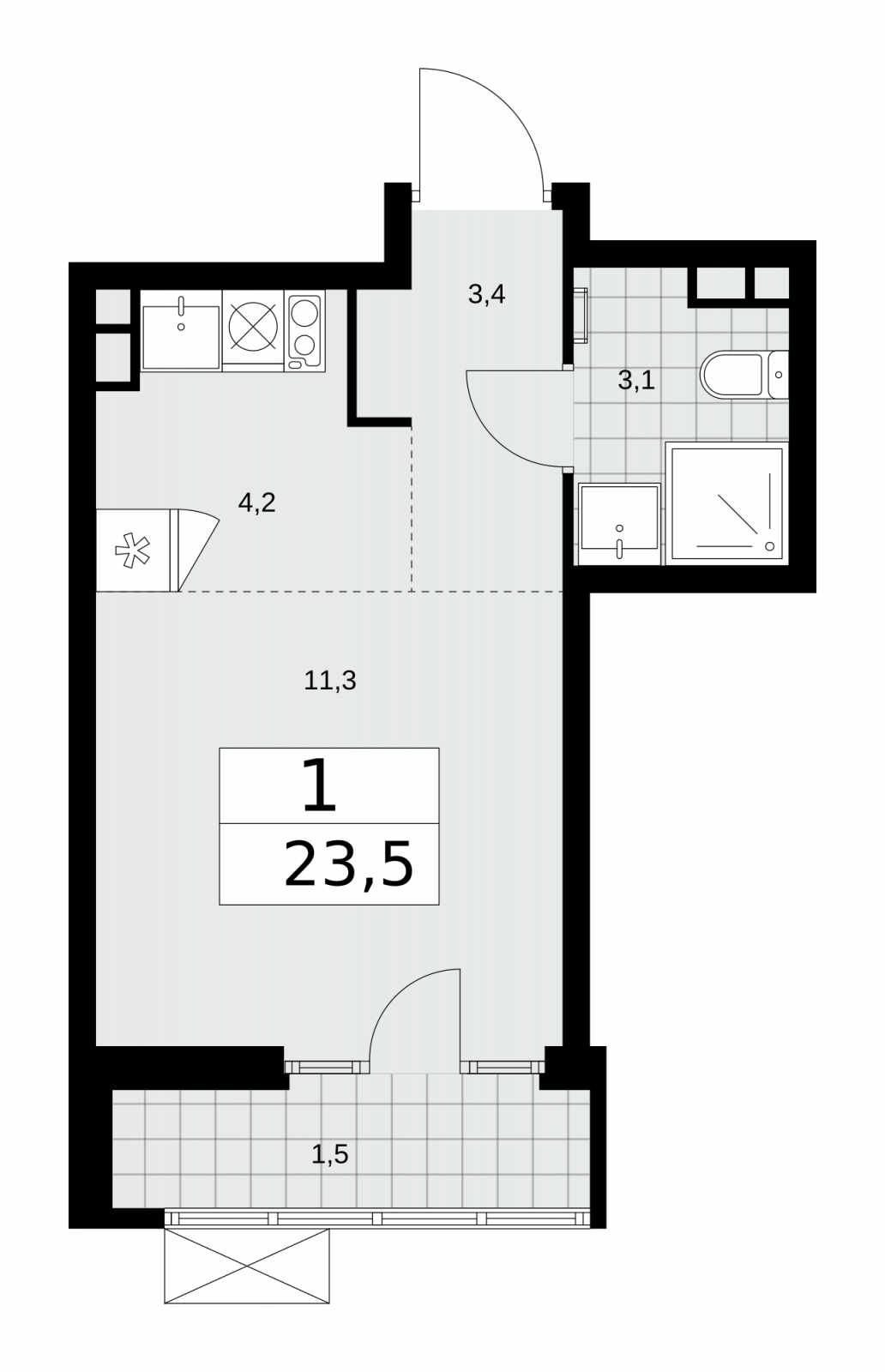 1-комн. квартира-студия от застройщика в ЖК "Деснаречье" на 10 этаже. Квартира без отделки, полностью готова к чистовой отделке и дальнейшему ремонту. Общая площадь: 23.5 кв.м., площадь гостиной 15.5 кв.м., из которых 4.2 кв.м. выделено под кухонную зону. Все окна выходят на одну сторону. В квартире один балкон, один совмещенный санузел. Высота потолков 2.99 м. Эта квартира предлагается без отделки. Будут установлены стеклопакеты с повышенной тепло- и шумоизоляцией, в квартиру заведены все коммуникации. Вы сможете в полном объеме реализовать ваши идеи обустройства вашего комфортного дома. Для тех, кто ценит время и не хочет дополнительных трат на ремонт мы предлагаем квартиры с предчистовой и дизайнерской отделкой. Дом монолитный, трехподъездный, высотой 15 этажей. Квартира находится в 3-й секции в корпусе 4.1. На этаже 6 квартир. В подъезде 1 пассажирский и 1 грузовой лифт. Начало строительства - 3 квартал 2023 года. Окончание строительства - 1 квартал 2026 года. Оформление сделки по договору долевого участия. Артикул квартиры по базе застройщика 88К-4.1-234. ПРЕДЛОЖЕНИЯ ОТ ЗАСТРОЙЩИКА В ОКТЯБРЕ 2025: Ипотека от 13,9 % для всех! На весь срок. "Семейная ипотека" вернулась. Ставка от 3,5 % на весь срок! Без удорожания! Выгодное ипотечное комбо: Ипотека от 2200 р./мес. и от 6 % после рождения ребёнка! Ипотека для всех "Держи пять!" - ставка 5 % на 2 года! *более подробную информацию по скидкам и акциям уточняйте в отделе продаж Масштабный проект "Деснаречье" на юго-западе Москвы, который включает три новых района («квартала»), объединённые общей идеей – воплотить в реальность мечты современных жителей столицы об интересном, комфортном и разноплановом городском пространстве в окружении рек и лесов, словно сошедших с полотен русских живописцев: - «Берег» оценят все, кому близка водная стихия: плеск волн, солнечные блики и прогулки вдоль тихого течения речи. - «Лес» утопает в зелени парков и лесов. Здесь соблюдён идеальный баланс загородного спокойствия и столичного комфорта. - «Парк», самый энергичный и яркий, отличается высокой концентрацией пространств для спорта и творчества. Жилой комплекс "Деснаречье" расположится в 12 км от МКАД по современному Калужскому шоссе. Внешний облик зданий соответствует современному стилю и стандартам, характерным и для других популярных проектов ГК «А101»: сочетание контрастных тонов, большое количество остекления, в котором отражается небо, гармония с природным окружением. Весь город - в вашем районе. Находиться на территории «15-минутного города» значит иметь всё необходимое для полноценной жизни в шаговой доступности. Маршруты в районе «Деснаречье» выстроены так, чтобы добраться до магазинов, парков, школ, салонов услуг и других объектов можно было всего за несколько минут пешком или на велосипеде. Двор закрытый от машин – это тишина, комфорт и безопасность, поэтому все машино-места (включая «семейные» и увеличенные, с возможностью установки роллетных шкафов) находятся в подземном паркинге. В паркинги можно спуститься на лифте из любого подъезда или по лестнице. Рядом с «Деснаречьем» в 2027 году планируется открытие станции метро «Десна», до которой будет удобно добраться пешком или на велосипеде. Дорога на автомобиле до перехватывающих парковок станций «Ольховая» и «Прокшино» займёт около 10 минут. В процессе реализации проекта будут появлят