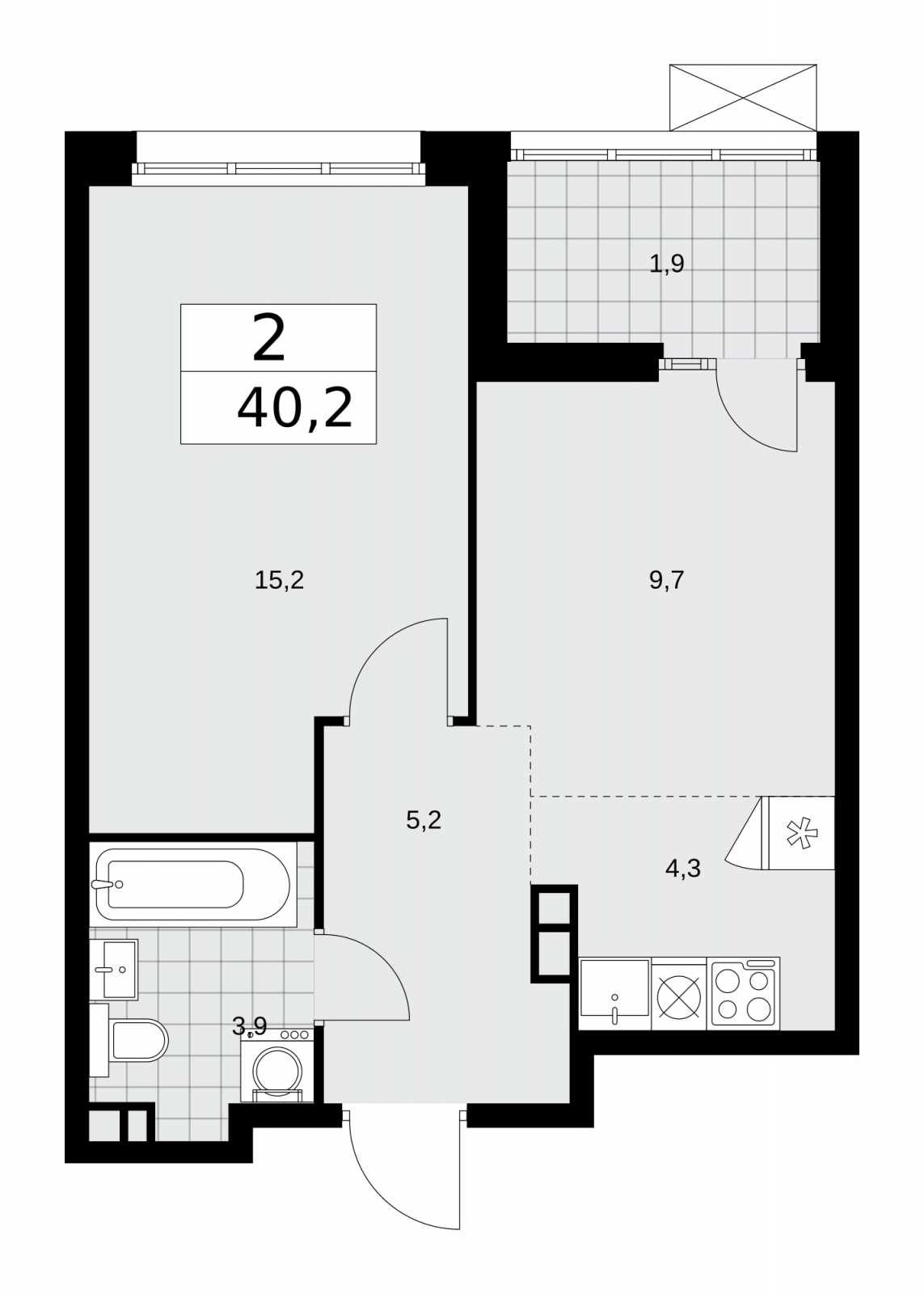 - Общая площадь 40.2 м²