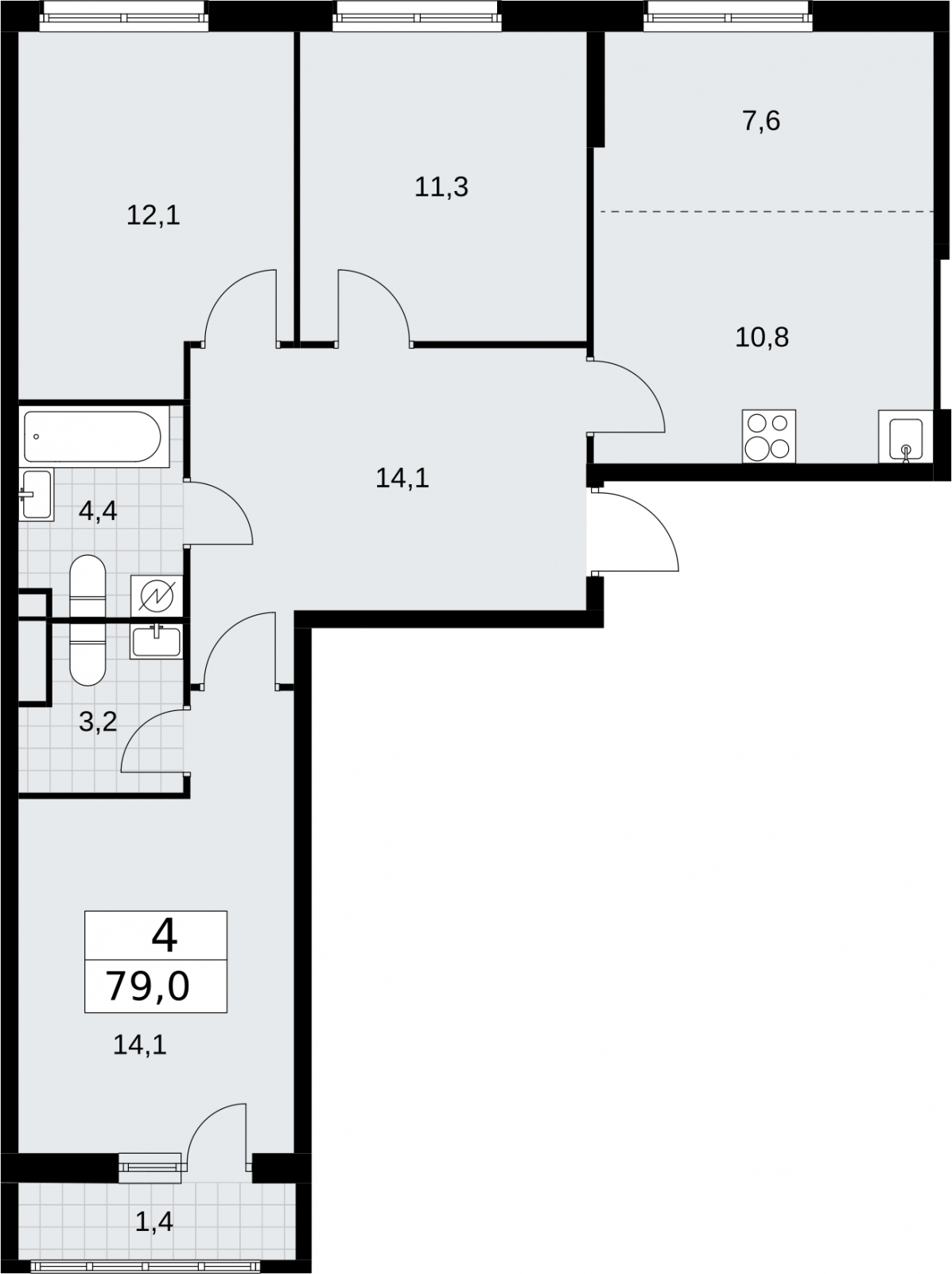 Продается 4-комн. квартира с европланировкой и отделкой в ЖК "Родные кварталы" на 6 этаже. Общая площадь: 79 кв.м., жилая: 45.111 кв.м., общая площадь гостиной-столовой с кухонной зоной: 18.4 кв.м. Европланировка, площадь комнат позволяет разместить в них все необходимое, а в просторной кухне-гостиной удобно как готовить, так и отдыхать. Квартира - распашонка, без проходных комнат, окна выходят на paзные стороны дома. В квартире один балкон, один совмещенный и один раздельный санузел. Высота потолков 2.9 м. Имеется ниша под гардероб. Дом монолитный, многоподъездный, высотой 9 этажей. Квартира находится во 2-й секции в корпусе 1.2. На этаже 5 квартир. В подъезде 1 грузовой лифт. Начало строительства - 4 квартал 2023 года. Окончание строительства - 4 квартал 2026 года. Оформление сделки по договору долевого участия. Артикул квартиры по базе застройщика 96К-1.2-172. ПРЕДЛОЖЕНИЯ ОТ ЗАСТРОЙЩИКА В ОКТЯБРЕ 2025: Ипотека от 13,9 % для всех! На весь срок. "Семейная ипотека" вернулась. Ставка от 3,5 % на весь срок! Без удорожания! Выгодное ипотечное комбо: Ипотека от 2200 р./мес. и от 6 % после рождения ребёнка! Ипотека для всех "Держи пять!" - ставка 5 % на 2 года! *более подробную информацию по скидкам и акциям уточняйте в отделе продаж Новый жилой комплекс "Родные кварталы" строится в уютной, экологически благополучной локации на юго-западе столицы. В ближайшем окружении – ухоженные малоэтажные посёлки и живописный Ульяновский лесопарк. Благодаря этому из окон откроются вдохновляющие виды, которые не исчезнут со временем за фасадами многоэтажек. Через весь район пройдёт главный бульвар, который свяжет набережную, жилые кварталы и площади в единое дружелюбное пространство, органично наполненное узнаваемыми элементами культурных традиций разных народов. В жилом комплексе создаются условия для комфортного отдыха и занятий спортом всех жителей. Здесь можно прогуляться и отдохнуть в лесопарке на берегу ручья, позаниматься на тренажёрах под открытым небом и спортивных площадках. Для малышей построят игровые комплексы, развивающие силу, координацию и ловкость. Всего в жилом комплексе будет оборудовано 6 га территории для спокойного отдыха и около 9 га — для активного. Подъезды в домах освещены в любое время суток, входы и вестибюль хорошо просматриваются с улицы. Витражное остекление обеспечивает приток естественного света днём, а вечером зажигаются светильники. В отделке домов используется сочетание вентилируемого фасада с облицовкой из фибробетонной плитки и штукатуркой. Комфортная высота домов соразмерна человеку и в среднем составляет 10 этажей. Все дома обеспечены собственными подземными паркингами. В них размещаются машино-места и кладовые. В паркинг или кладовую можно спуститься на лифте или по лестнице. В комплексе появятся бытовые сервисы, магазины, аптеки и другие торгово-бытовые объекты. В жилом районе «Родные кварталы» будут построены: - образовательный центр: школа на 1300 учеников и детский сад на 250 малышей, - два детских сада на 200 мест каждый (один из них сдаётся в 1-й очереди). В транспортной доступности уже работают: - школа № 41 и детский сад — по Боровскому шоссе, - школа № 2057 и детский сад — на запад от района, в дер. Марушкино. ЖК «Родные кварталы» строится в Новомосковском округе столицы, в 15 минутах на автомобиле от аэропорта «Внуково». Район обеспечен удобными выез