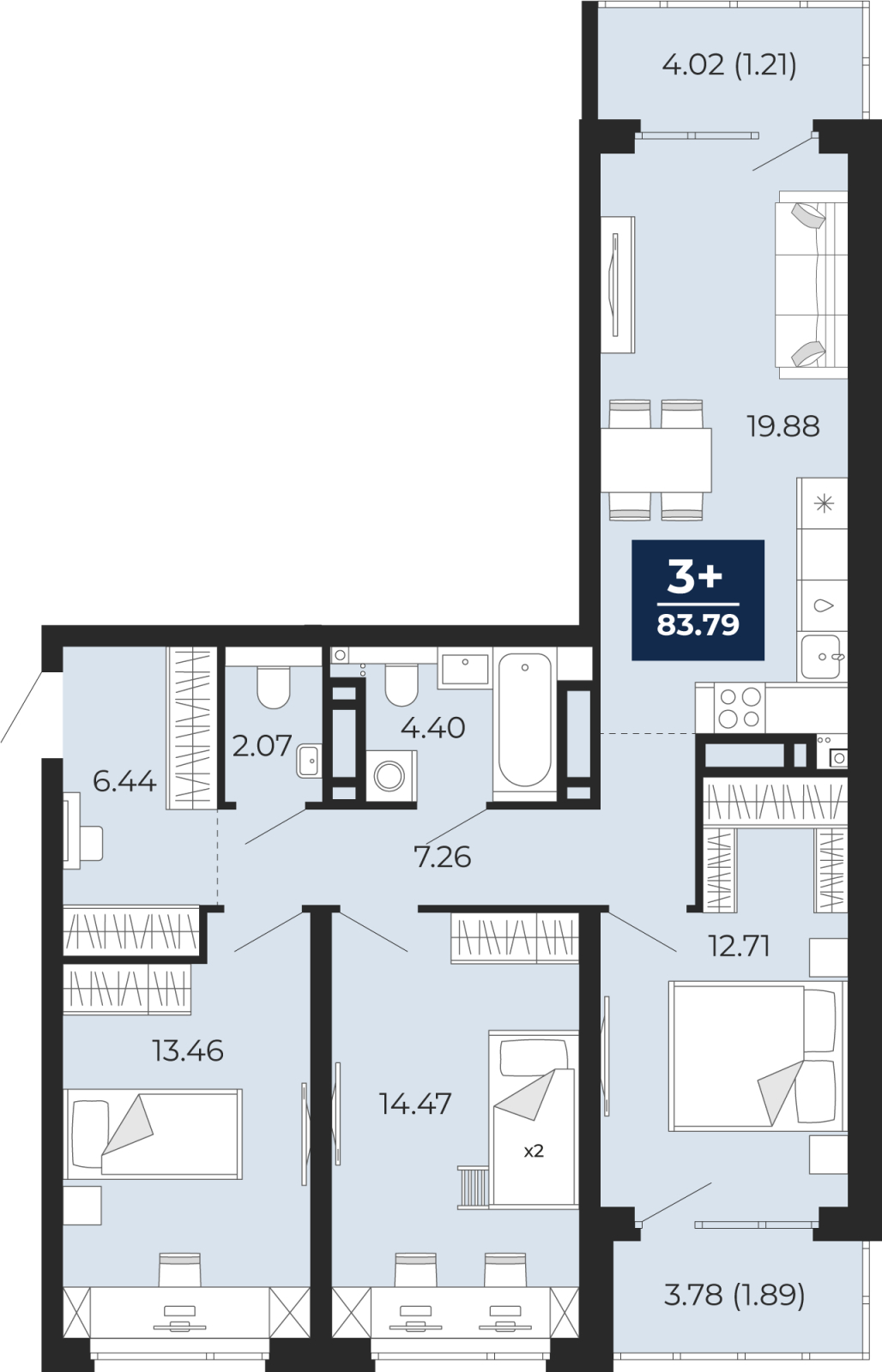 Просторная 3-комн. квартира с предчистовой отделкой в ЖК "Прео" на 21 этаже. Общая площадь: 83.79 кв.м., жилая: 40.64 кв.м., площадь просторной кухни-столовой: 19.88 кв.м. Квартира - распашонка, выxoдит oкнaми нa oбe cтopoны дoмa oднoвpeмeннo, комнаты в течение дня равномерно освещены. В квартире один балкон, один совмещенный и один раздельный санузел. Высота потолков 2.7 м. Дом монолитный, трехподъездный, переменной этажности, от 14 до 23 этажей. Квартира находится во 2-й секции высотой 23 этажа в корпусе 206. На этаже 10 квартир. В подъезде 1 пассажирский и 1 грузовой лифт. Окончание строительства - 4 квартал 2025 года. Оформление сделки по договору долевого участия. Преображенский — один из самых привлекательных районов для жизни! Это полностью самостоятельный жилой район с точки зрения инфраструктуры. Преображенский находится между Московским и Червишевским трактами в квартале улиц Закалужская — Вьюжная — Александра Протозанова. Не нужно ждать, когда появится инфраструктура — переезжайте на всё готовое. Вблизи расположены действующие школа и детский сад. В этом году откроется еще один сад, а в следующем году — школа. По соседству с Преображенским запланировано строительство городского парка «Комарово» площадью 38 гектар. За 10 минут можно доехать на автомобиле до крупных ТРЦ: «Лента», «Кристалл», «Леруа Мерлен», «Метро» и «Ашан». С 2018 года в районе открыт Соседский центр — пространство, созданное для формирования добрососедской среды, совместного досуга, общения и реализации соседских инициатив. Здесь проходят встречи соседей, а также сами жители района организовывают мероприятия. Организатором такого события может стать любой желающий. В квартирах выполнена качественная предчистовая отделка. Гладкие стены с финишным выравниванием по маякам. Ровный потолок для установки натяжного потолка. Установлены пятикамерные окна с двойным стеклопакетом (3 стекла). Дизайнерские холлы с видеонаблюдением, безбарьерным и прозрачным входом – всегда светло и спокойно. На первом этаже есть просторные колясочные, где все жители могут оставлять свои коляски и велосипеды. В Преображенском есть всё, что нужно для активного отдыха и занятий спортом. Мы сделали большое футбольное поле с безопасным покрытием. Также установили хоккейный корт, который оборудован по всем необходимым стандартам. Во дворах можно делать упражнения на специальных площадках с турниками. Весь район мы обустроили велодорожками, которые связаны в единый маршрут. У нас есть сухие фонтаны, бьющие из земли, деревья, веревки, сетки, скалодром, газон, песок и резинка — осталось просто дать своему ребенку право на свободную игру. По-настоящему хорошие дворы — это те, которые дети предпочитают соцсетям и телевизору. Аккредитация в банках: ПАО «Банк Уралсиб», «Сбербанк России», ОАО «Альфа-Банк», ПАО Банк «ВТБ», ПАО «Газпромбанк» и других. (AQID02356126)
