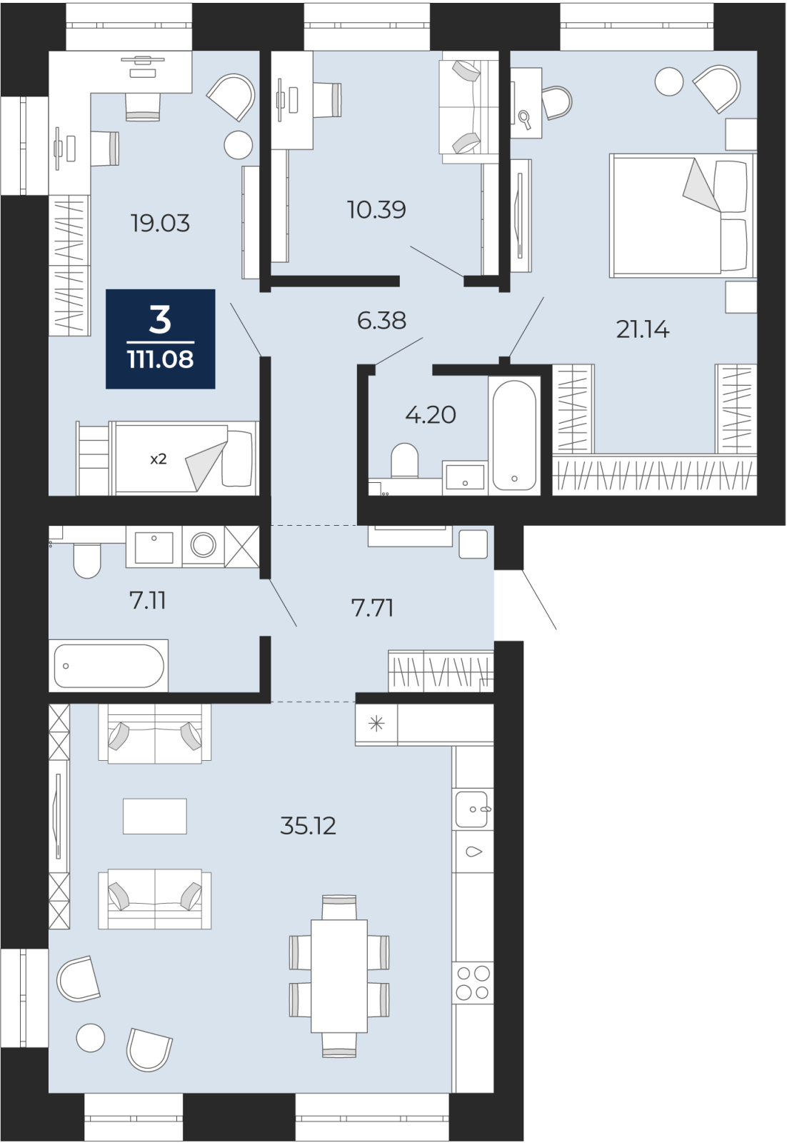 - Общая площадь 111.08 м²