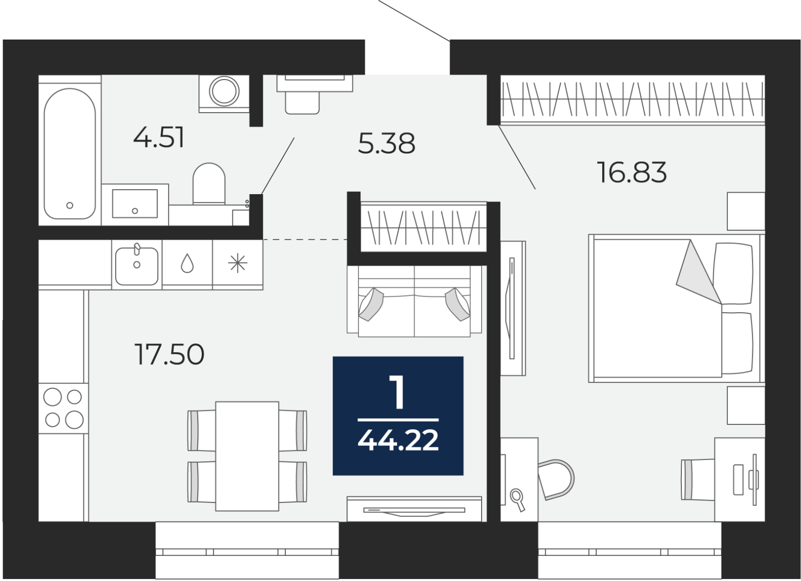 1-комн. квартира от застройщика с предчистовой отделкой в ЖК "Преображенский" на 8 этаже. Общая площадь: 44.22 кв.м., жилая: 16.83 кв.м., площадь просторной кухни-столовой: 17.5 кв.м. Все окна выходят на одну сторону. В квартире один совмещенный санузел. Высота потолков 2.7 м. Дом монолитный, многоподъездный, переменной этажности, от 8 до 12 этажей. Квартира находится в 1-й секции высотой 12 этажей в корпусе ГП-82. На этаже 7 квартир. В подъезде 1 пассажирский и 1 грузовой лифт. Окончание строительства - 3 квартал 2026 года. Оформление сделки по договору долевого участия. Квартал будет расположен в микрорайоне Славянский на пересечении улиц Мира и 70-летия Октября. Престижный район, собственный парк, вся необходимая для жизни, учёбы и работы инфраструктура — новая школа с бассейном и кванториумом, новый детский сад, поликлиника, спорткомплекс, магазины и др. Чтобы в квартирах было как можно больше свободного пространства, мы предусмотрели индивидуальные кладовые на цокольном этаже. Оставляйте коляски и сезонный спортинвентарь после прогулок здесь — удобно для вас и чисто для квартиры. В подземный паркинг можно спуститься на лифте прямо с квартирной площадки. (AQID02421354)