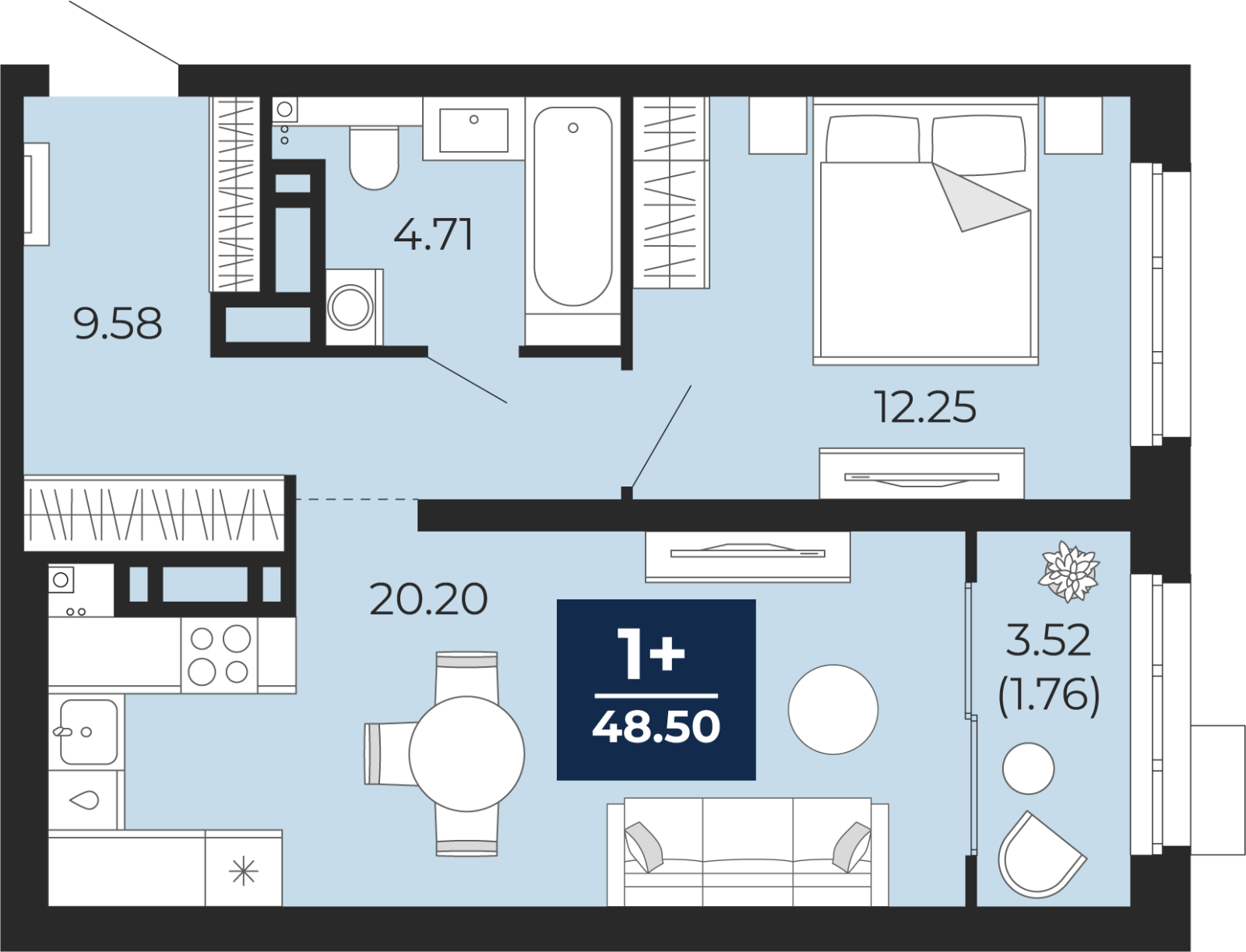 Просторная однокомнатная квартира с предчистовой отделкой в ЖК "Прео" на 4 этаже. Общая площадь: 48.5 кв.м., жилая: 12.25 кв.м., площадь просторной кухни-столовой: 20.2 кв.м. Все окна выходят на одну сторону. В квартире одна лоджия, один совмещенный санузел. Высота потолков 2.7 м. Дом монолитный, черырехподъездный, переменной этажности, от 14 до 21 этажей. Квартира находится в 1-й секции высотой 21 этаж в корпусе 211. На этаже 8 квартир. В подъезде 1 пассажирский и 1 грузовой лифт. Окончание строительства - 4 квартал 2026 года. Оформление сделки по договору долевого участия. Преображенский — один из самых привлекательных районов для жизни! Это полностью самостоятельный жилой район с точки зрения инфраструктуры. Преображенский находится между Московским и Червишевским трактами в квартале улиц Закалужская — Вьюжная — Александра Протозанова. Не нужно ждать, когда появится инфраструктура — переезжайте на всё готовое. Вблизи расположены действующие школа и детский сад. В этом году откроется еще один сад, а в следующем году — школа. По соседству с Преображенским запланировано строительство городского парка «Комарово» площадью 38 гектар. За 10 минут можно доехать на автомобиле до крупных ТРЦ: «Лента», «Кристалл», «Леруа Мерлен», «Метро» и «Ашан». С 2018 года в районе открыт Соседский центр — пространство, созданное для формирования добрососедской среды, совместного досуга, общения и реализации соседских инициатив. Здесь проходят встречи соседей, а также сами жители района организовывают мероприятия. Организатором такого события может стать любой желающий. В квартирах выполнена качественная предчистовая отделка. Гладкие стены с финишным выравниванием по маякам. Ровный потолок для установки натяжного потолка. Установлены пятикамерные окна с двойным стеклопакетом (3 стекла). Дизайнерские холлы с видеонаблюдением, безбарьерным и прозрачным входом – всегда светло и спокойно. На первом этаже есть просторные колясочные, где все жители могут оставлять свои коляски и велосипеды. В Преображенском есть всё, что нужно для активного отдыха и занятий спортом. Мы сделали большое футбольное поле с безопасным покрытием. Также установили хоккейный корт, который оборудован по всем необходимым стандартам. Во дворах можно делать упражнения на специальных площадках с турниками. Весь район мы обустроили велодорожками, которые связаны в единый маршрут. У нас есть сухие фонтаны, бьющие из земли, деревья, веревки, сетки, скалодром, газон, песок и резинка — осталось просто дать своему ребенку право на свободную игру. По-настоящему хорошие дворы — это те, которые дети предпочитают соцсетям и телевизору. Аккредитация в банках: ПАО Банк «ВТБ», ПАО «Газпромбанк», ПАО «Банк Уралсиб», ОАО «Альфа-Банк», «Сбербанк России» и других. (AQID02427588)
