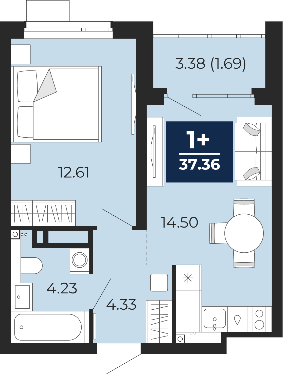 - Общая площадь 37.36 м²