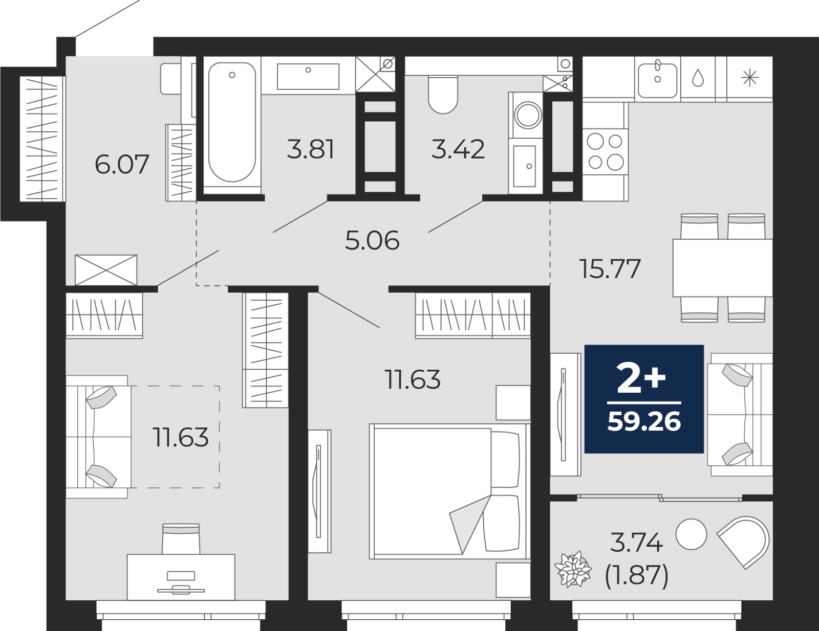 2-комн. квартира с предчистовой отделкой в ЖК "Прео" на 4 этаже. Общая площадь: 59.26 кв.м., жилая: 23.26 кв.м., площадь просторной кухни-столовой: 15.77 кв.м. Комнаты изолированные, все окна выходят на одну сторону. В квартире одна лоджия, один раздельный санузел. Высота потолков 2.7 м. Квартира находится в корпусе 212. Дом монолитный, одноподъездный, высотой 21 этаж. На этаже 8 квартир. В подъезде 2 пассажирских и 1 грузовой лифт. Окончание строительства - 4 квартал 2026 года. Оформление сделки по договору долевого участия. Преображенский — один из самых привлекательных районов для жизни! Это полностью самостоятельный жилой район с точки зрения инфраструктуры. Преображенский находится между Московским и Червишевским трактами в квартале улиц Закалужская — Вьюжная — Александра Протозанова. Не нужно ждать, когда появится инфраструктура — переезжайте на всё готовое. Вблизи расположены действующие школа и детский сад. В этом году откроется еще один сад, а в следующем году — школа. По соседству с Преображенским запланировано строительство городского парка «Комарово» площадью 38 гектар. За 10 минут можно доехать на автомобиле до крупных ТРЦ: «Лента», «Кристалл», «Леруа Мерлен», «Метро» и «Ашан». С 2018 года в районе открыт Соседский центр — пространство, созданное для формирования добрососедской среды, совместного досуга, общения и реализации соседских инициатив. Здесь проходят встречи соседей, а также сами жители района организовывают мероприятия. Организатором такого события может стать любой желающий. В квартирах выполнена качественная предчистовая отделка. Гладкие стены с финишным выравниванием по маякам. Ровный потолок для установки натяжного потолка. Установлены пятикамерные окна с двойным стеклопакетом (3 стекла). Дизайнерские холлы с видеонаблюдением, безбарьерным и прозрачным входом – всегда светло и спокойно. На первом этаже есть просторные колясочные, где все жители могут оставлять свои коляски и велосипеды. В Преображенском есть всё, что нужно для активного отдыха и занятий спортом. Мы сделали большое футбольное поле с безопасным покрытием. Также установили хоккейный корт, который оборудован по всем необходимым стандартам. Во дворах можно делать упражнения на специальных площадках с турниками. Весь район мы обустроили велодорожками, которые связаны в единый маршрут. У нас есть сухие фонтаны, бьющие из земли, деревья, веревки, сетки, скалодром, газон, песок и резинка — осталось просто дать своему ребенку право на свободную игру. По-настоящему хорошие дворы — это те, которые дети предпочитают соцсетям и телевизору. Аккредитация в банках: ОАО «Альфа-Банк», ПАО «Газпромбанк», «Сбербанк России», ПАО «Банк Уралсиб», ПАО Банк «ВТБ» и других. (AQID02427631)