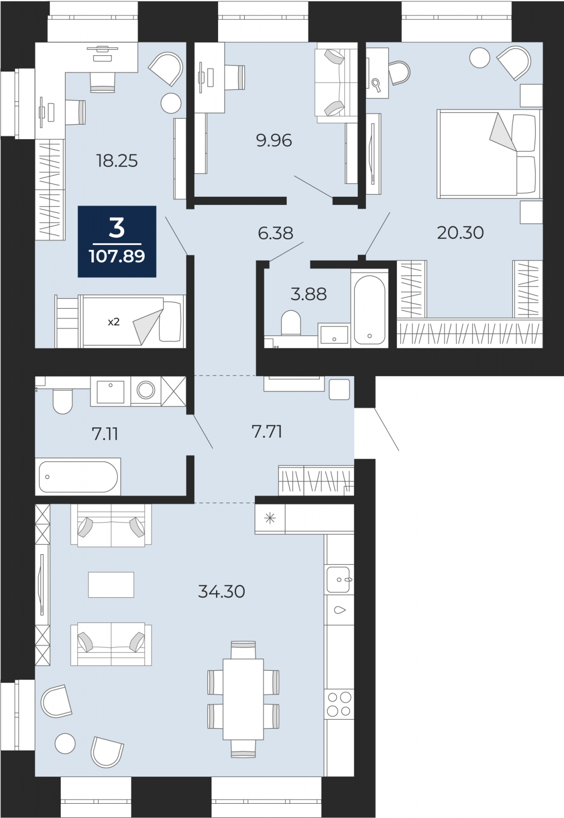 - Общая площадь 107.89 м²