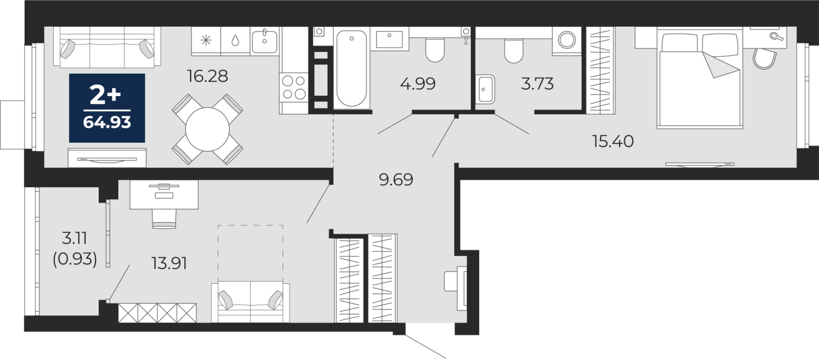 - Общая площадь 64.93 м²