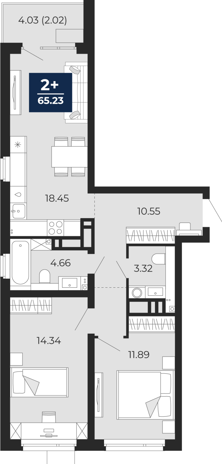 - Общая площадь 65.23 м²