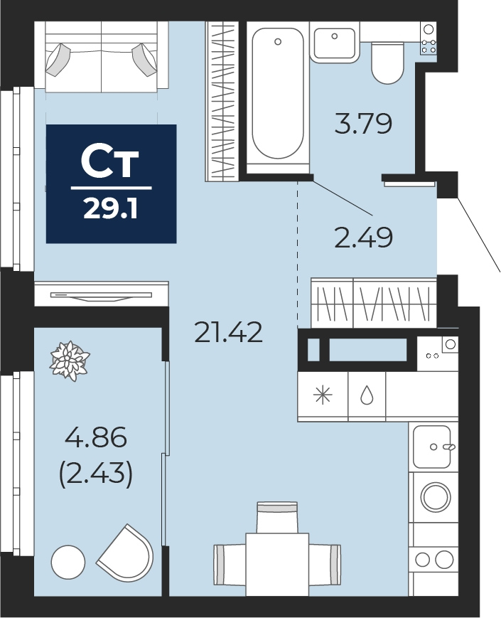 Просторная однокомнатная квартира-студия в ЖК "Беринг" на 2 этаже. Квартира без отделки, новый собственник может сделать ремонт по своему проекту. Общая площадь: 29.1 кв.м., площадь гостиной 21.42 кв.м., из которых 5 кв.м. выделено под кухонную зону. Все окна выходят на одну сторону. В квартире одна лоджия, один совмещенный санузел. Высота потолков 2.75 м. Дом монолитный, многоподъездный, переменной этажности, от 9 до 22 этажей. Квартира находится в 73.2-й секции высотой 22 этажа в корпусе ГП-73. На этаже 7 квартир. В подъезде 1 пассажирский и 1 грузовой лифт. Окончание строительства - 4 квартал 2025 года. Оформление сделки по договору долевого участия. Подобно знаменитому исследователю, мы чувствуем себя первооткрывателями этой локации. Хотим показать новую суть места, сформировать для вас жизненный опыт, которого ещё не было. Беринг — район зелёного цвета. Беринг — район, который откроется вам с другой стороны. Впечатлит новым уровнем комфорта и качеством жизни. Беринг — открытие на карте города. Первый квартал расположен в районе Тура, в границах улиц: Камчатская – Западносибирская – Энтузиастов. Вокруг уже есть всё для того, чтобы ежедневная рутина была лишь частью жизни и не доставляла дискомфорта. Школы и детские сады, магазины и аптеки, поликлиника, места для семейного отдыха, пеших и велопрогулок, и даже рыбалки. Масштабное озеленение дворов — визитная карточка ЭНКО и ваш оазис спокойствия, чтобы отвлечься от повседневности. Раскидистые деревья, кустарники, травы и цветы — осталось остановиться, вдохнуть и расслабиться, глядя на эту природную красоту. Стилистика подъездов продолжает концепцию Беринга, вдохновлённого Камчаткой: сдержанный, но при этом впечатляющий дизайн соседствует с удобством и функциональностью. (AQID02315398)