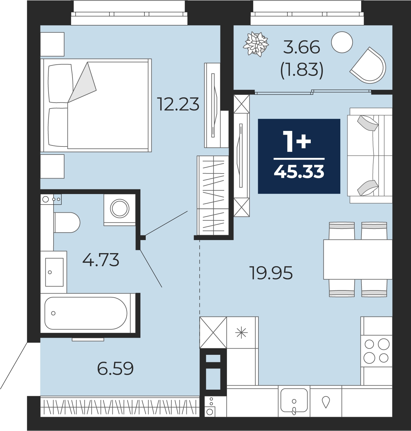 - Общая площадь 45.33 м²