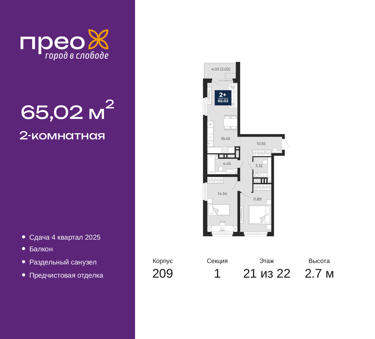 Двухкомнатная квартира от застройщика с предчистовой отделкой в ЖК "Прео" на 21 этаже. Общая площадь: 65.02 кв.м., жилая: 28.32 кв.м., площадь просторной кухни-столовой: 18.62 кв.м. Квартира без проходных комнат, окна выходят нa три cтopoны дома. В квартире один балкон, один раздельный санузел. Высота потолков 2.7 м. Квартира находится в корпусе 209. Дом монолитный, одноподъездный, высотой 22 этажа. На этаже 8 квартир. В подъезде 1 пассажирский и 1 грузовой лифт. Окончание строительства - 4 квартал 2025 года. Оформление сделки по договору долевого участия. Преображенский — один из самых привлекательных районов для жизни! Это полностью самостоятельный жилой район с точки зрения инфраструктуры. Преображенский находится между Московским и Червишевским трактами в квартале улиц Закалужская — Вьюжная — Александра Протозанова. Не нужно ждать, когда появится инфраструктура — переезжайте на всё готовое. Вблизи расположены действующие школа и детский сад. В этом году откроется еще один сад, а в следующем году — школа. По соседству с Преображенским запланировано строительство городского парка «Комарово» площадью 38 гектар. За 10 минут можно доехать на автомобиле до крупных ТРЦ: «Лента», «Кристалл», «Леруа Мерлен», «Метро» и «Ашан». С 2018 года в районе открыт Соседский центр — пространство, созданное для формирования добрососедской среды, совместного досуга, общения и реализации соседских инициатив. Здесь проходят встречи соседей, а также сами жители района организовывают мероприятия. Организатором такого события может стать любой желающий. В квартирах выполнена качественная предчистовая отделка. Гладкие стены с финишным выравниванием по маякам. Ровный потолок для установки натяжного потолка. Установлены пятикамерные окна с двойным стеклопакетом (3 стекла). Дизайнерские холлы с видеонаблюдением, безбарьерным и прозрачным входом – всегда светло и спокойно. На первом этаже есть просторные колясочные, где все жители могут оставлять свои коляски и велосипеды. В Преображенском есть всё, что нужно для активного отдыха и занятий спортом. Мы сделали большое футбольное поле с безопасным покрытием. Также установили хоккейный корт, который оборудован по всем необходимым стандартам. Во дворах можно делать упражнения на специальных площадках с турниками. Весь район мы обустроили велодорожками, которые связаны в единый маршрут. У нас есть сухие фонтаны, бьющие из земли, деревья, веревки, сетки, скалодром, газон, песок и резинка — осталось просто дать своему ребенку право на свободную игру. По-настоящему хорошие дворы — это те, которые дети предпочитают соцсетям и телевизору. Аккредитация в банках: ОАО «Альфа-Банк», «Сбербанк России», ПАО Банк «ВТБ», ПАО «Газпромбанк», ПАО «Банк Уралсиб» и других. (AQID02355986)