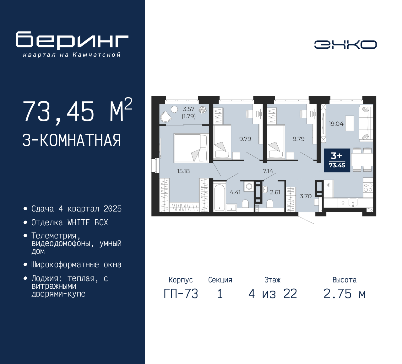 - Общая площадь 73.45 м²