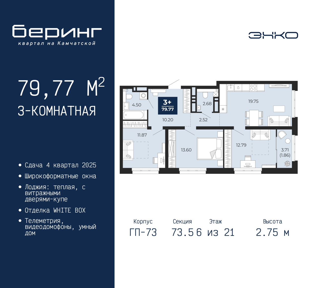 - Общая площадь 79.77 м²