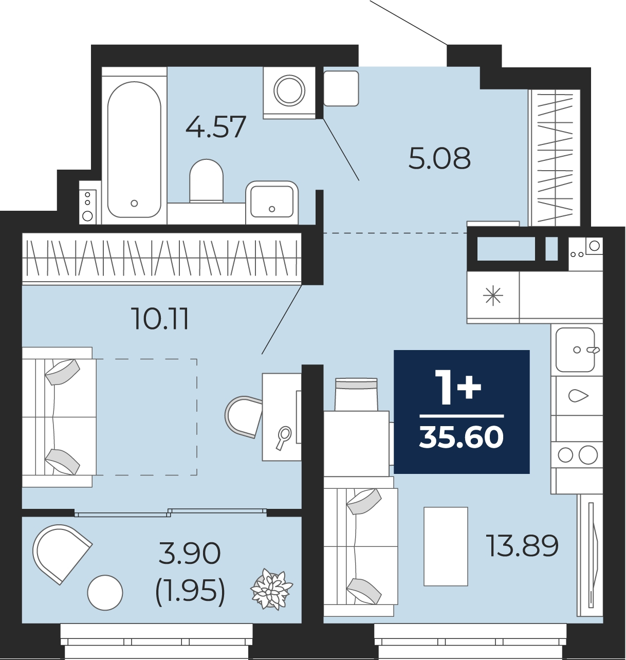 - Общая площадь 35.6 м²