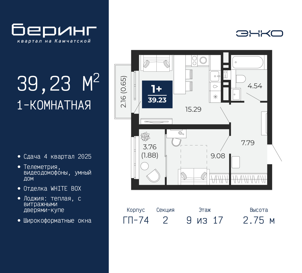 Просторная 1-комн. квартира в ЖК "Беринг" на 9 этаже. Квартира без отделки, после выдачи ключей можно делать ремонт. Общая площадь: 39.23 кв.м., жилая: 9.08 кв.м., площадь просторной кухни-столовой: 15.29 кв.м. Все окна выходят на одну сторону. В квартире один балкон и одна лоджия, один совмещенный санузел. Высота потолков 2.75 м. Дом монолитный, многоподъездный, переменной этажности, от 9 до 21 этажей. Квартира находится во 2-й секции высотой 17 этажей в корпусе ГП-74. На этаже 7 квартир. В подъезде 1 пассажирский и 1 грузовой лифт. Окончание строительства - 4 квартал 2025 года. Оформление сделки по договору долевого участия. Подобно знаменитому исследователю, мы чувствуем себя первооткрывателями этой локации. Хотим показать новую суть места, сформировать для вас жизненный опыт, которого ещё не было. Беринг — район зелёного цвета. Беринг — район, который откроется вам с другой стороны. Впечатлит новым уровнем комфорта и качеством жизни. Беринг — открытие на карте города. Первый квартал расположен в районе Тура, в границах улиц: Камчатская – Западносибирская – Энтузиастов. Вокруг уже есть всё для того, чтобы ежедневная рутина была лишь частью жизни и не доставляла дискомфорта. Школы и детские сады, магазины и аптеки, поликлиника, места для семейного отдыха, пеших и велопрогулок, и даже рыбалки. Масштабное озеленение дворов — визитная карточка ЭНКО и ваш оазис спокойствия, чтобы отвлечься от повседневности. Раскидистые деревья, кустарники, травы и цветы — осталось остановиться, вдохнуть и расслабиться, глядя на эту природную красоту. Стилистика подъездов продолжает концепцию Беринга, вдохновлённого Камчаткой: сдержанный, но при этом впечатляющий дизайн соседствует с удобством и функциональностью. (AQID02315747)