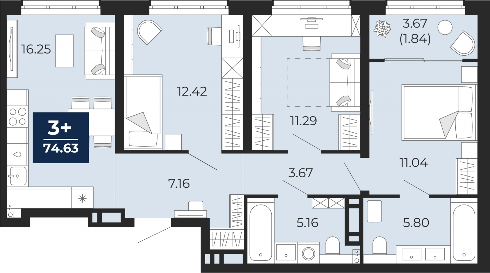Просторная трехкомнатная квартира в ЖК "Беринг" на 14 этаже. Квартира без отделки, новый собственник может сделать ремонт по своему проекту. Общая площадь: 74.63 кв.м., жилая: 34.75 кв.м., площадь просторной кухни-столовой: 16.25 кв.м. Комнаты изолированные, все окна выходят на одну сторону. В квартире одна лоджия, два совмещенных санузла. Высота потолков 2.75 м. Дом монолитный, многоподъездный, переменной этажности, от 9 до 21 этажей. Квартира находится в 4-й секции высотой 14 этажей в корпусе ГП-74. На этаже 7 квартир. В подъезде 1 пассажирский и 1 грузовой лифт. Окончание строительства - 4 квартал 2025 года. Оформление сделки по договору долевого участия. Подобно знаменитому исследователю, мы чувствуем себя первооткрывателями этой локации. Хотим показать новую суть места, сформировать для вас жизненный опыт, которого ещё не было. Беринг — район зелёного цвета. Беринг — район, который откроется вам с другой стороны. Впечатлит новым уровнем комфорта и качеством жизни. Беринг — открытие на карте города. Первый квартал расположен в районе Тура, в границах улиц: Камчатская – Западносибирская – Энтузиастов. Вокруг уже есть всё для того, чтобы ежедневная рутина была лишь частью жизни и не доставляла дискомфорта. Школы и детские сады, магазины и аптеки, поликлиника, места для семейного отдыха, пеших и велопрогулок, и даже рыбалки. Масштабное озеленение дворов — визитная карточка ЭНКО и ваш оазис спокойствия, чтобы отвлечься от повседневности. Раскидистые деревья, кустарники, травы и цветы — осталось остановиться, вдохнуть и расслабиться, глядя на эту природную красоту. Стилистика подъездов продолжает концепцию Беринга, вдохновлённого Камчаткой: сдержанный, но при этом впечатляющий дизайн соседствует с удобством и функциональностью. (AQID02316286)