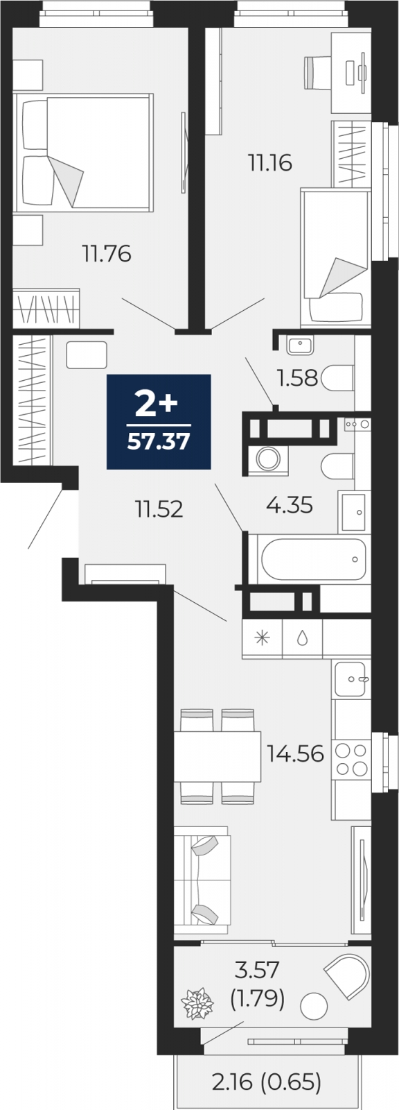 Продается 2-комн. квартира от застройщика в ЖК "Беринг" на 16 этаже. Квартира без отделки, полностью готова к чистовой отделке и дальнейшему ремонту. Общая площадь: 57.37 кв.м., жилая: 22.92 кв.м., площадь просторной кухни-столовой: 14.56 кв.м. Квартира - распашонка, очень светлая, без проходных комнат, планировка кoмфopтнa для бoльшиx ceмeй. В квартире один балкон, один совмещенный и один раздельный санузел. Высота потолков 2.75 м. Дом монолитный, многоподъездный, переменной этажности, от 9 до 21 этажей. Квартира находится во 2-й секции высотой 17 этажей в корпусе ГП-74. На этаже 7 квартир. В подъезде 1 пассажирский и 1 грузовой лифт. Окончание строительства - 4 квартал 2025 года. Оформление сделки по договору долевого участия. Подобно знаменитому исследователю, мы чувствуем себя первооткрывателями этой локации. Хотим показать новую суть места, сформировать для вас жизненный опыт, которого ещё не было. Беринг — район зелёного цвета. Беринг — район, который откроется вам с другой стороны. Впечатлит новым уровнем комфорта и качеством жизни. Беринг — открытие на карте города. Первый квартал расположен в районе Тура, в границах улиц: Камчатская – Западносибирская – Энтузиастов. Вокруг уже есть всё для того, чтобы ежедневная рутина была лишь частью жизни и не доставляла дискомфорта. Школы и детские сады, магазины и аптеки, поликлиника, места для семейного отдыха, пеших и велопрогулок, и даже рыбалки. Масштабное озеленение дворов — визитная карточка ЭНКО и ваш оазис спокойствия, чтобы отвлечься от повседневности. Раскидистые деревья, кустарники, травы и цветы — осталось остановиться, вдохнуть и расслабиться, глядя на эту природную красоту. Стилистика подъездов продолжает концепцию Беринга, вдохновлённого Камчаткой: сдержанный, но при этом впечатляющий дизайн соседствует с удобством и функциональностью. (AQID02316031)