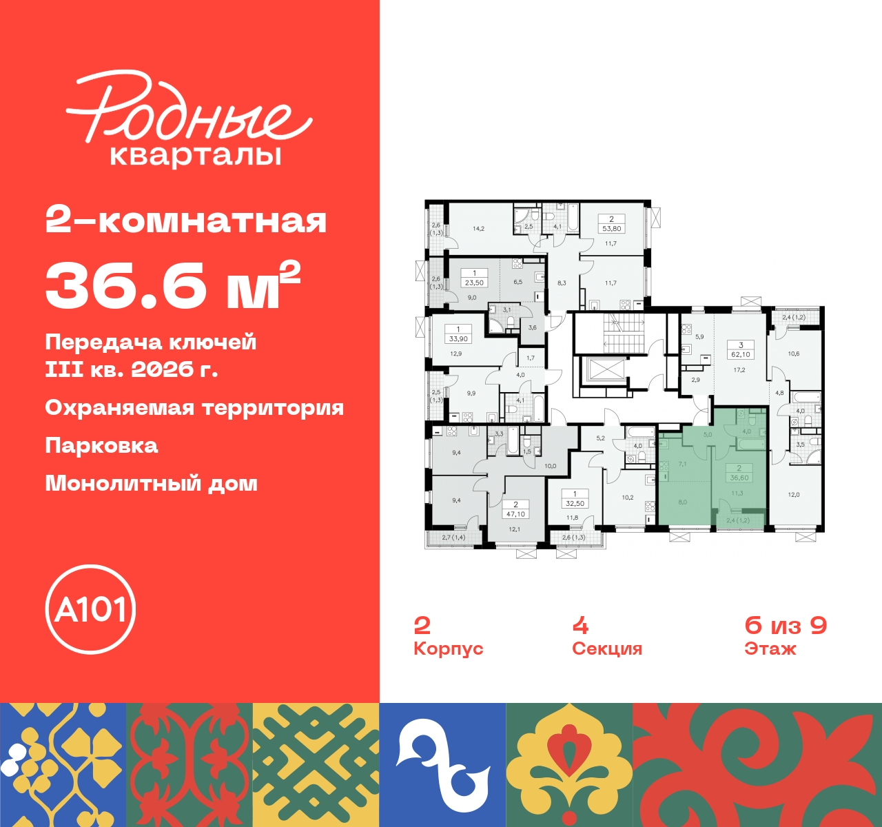 Продается 2-комн. квартира с европланировкой в ЖК "Родные кварталы" на 6 этаже. Квартира без отделки, после получения ключей можно делать ремонт. Общая площадь: 36.6 кв.м., жилая: 19.3 кв.м., суммарная площадь гостиной-столовой с кухонной зоной: 15.1 кв.м. Европланировка, в просторной кухне-гостиной удобно как готовить, так и отдыхать. Комнаты изолированные, все окна выходят на одну сторону. В квартире одна лоджия, один совмещенный санузел. Высота потолков 2.9 м. Имеется ниша под гардероб. Дом монолитный, многоподъездный, высотой 9 этажей. Квартира находится в 4-й секции в корпусе 2. На этаже 7 квартир. В подъезде 1 грузовой лифт. Начало строительства - 4 квартал 2023 года. Окончание строительства - 3 квартал 2026 года. Оформление сделки по договору долевого участия. Артикул квартиры по базе застройщика 96К-2-174. ПРЕДЛОЖЕНИЯ ОТ ЗАСТРОЙЩИКА В ОКТЯБРЕ 2025: Ипотека от 13,9 % для всех! На весь срок. "Семейная ипотека" вернулась. Ставка от 3,5 % на весь срок! Без удорожания! Выгодное ипотечное комбо: Ипотека от 2200 р./мес. и от 6 % после рождения ребёнка! Ипотека для всех "Держи пять!" - ставка 5 % на 2 года! *более подробную информацию по скидкам и акциям уточняйте в отделе продаж Новый жилой комплекс "Родные кварталы" строится в уютной, экологически благополучной локации на юго-западе столицы. В ближайшем окружении – ухоженные малоэтажные посёлки и живописный Ульяновский лесопарк. Благодаря этому из окон откроются вдохновляющие виды, которые не исчезнут со временем за фасадами многоэтажек. Через весь район пройдёт главный бульвар, который свяжет набережную, жилые кварталы и площади в единое дружелюбное пространство, органично наполненное узнаваемыми элементами культурных традиций разных народов. В жилом комплексе создаются условия для комфортного отдыха и занятий спортом всех жителей. Здесь можно прогуляться и отдохнуть в лесопарке на берегу ручья, позаниматься на тренажёрах под открытым небом и спортивных площадках. Для малышей построят игровые комплексы, развивающие силу, координацию и ловкость. Всего в жилом комплексе будет оборудовано 6 га территории для спокойного отдыха и около 9 га — для активного. Подъезды в домах освещены в любое время суток, входы и вестибюль хорошо просматриваются с улицы. Витражное остекление обеспечивает приток естественного света днём, а вечером зажигаются светильники. В отделке домов используется сочетание вентилируемого фасада с облицовкой из фибробетонной плитки и штукатуркой. Комфортная высота домов соразмерна человеку и в среднем составляет 10 этажей. Все дома обеспечены собственными подземными паркингами. В них размещаются машино-места и кладовые. В паркинг или кладовую можно спуститься на лифте или по лестнице. В комплексе появятся бытовые сервисы, магазины, аптеки и другие торгово-бытовые объекты. В жилом районе «Родные кварталы» будут построены: - образовательный центр: школа на 1300 учеников и детский сад на 250 малышей, - два детских сада на 200 мест каждый (один из них сдаётся в 1-й очереди). В транспортной доступности уже работают: - школа № 41 и детский сад — по Боровскому шоссе, - школа № 2057 и детский сад — на запад от района, в дер. Марушкино. ЖК «Родные кварталы» строится в Новомосковском округе столицы, в 15 минутах на автомобиле от аэропорта «Внуково». Район обеспечен удобными выездами на три крупные современные автотрассы. Зд