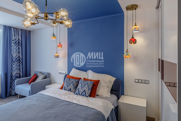 СПАЛЬНЯ - 12,4м2Здесь есть место для комфортного сна и дополнительного отдыха за чашкой чая и просмотром фильма. Система хранения, место для книг. Удобное зонирование светом и система охлаждения воздуха.