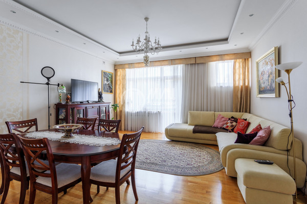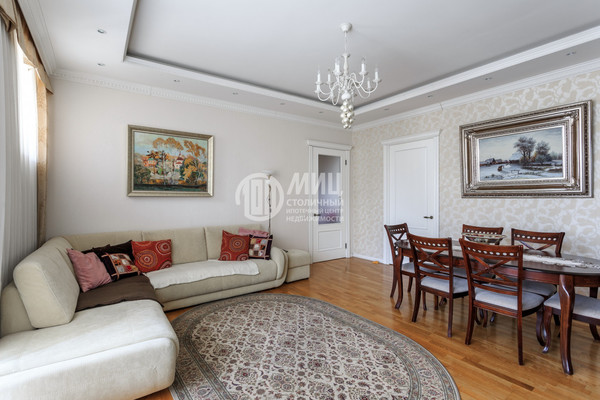 Арт. 117259553 Я могу понять тех, кто ищет квартиру в домах той, довоенной Москвы с удивительной энергией строительства Нового мира и и огромным желанием сделать нашу жизнь лучше! Это то место Москвы, где история нашей страны как на ладони. Начну с!подъезда- эпизоды многих исторических фильмов сняты на этих лестницах! Жильцы дома- настоящая Московская интеллигенция, любящая свой город. Здесь даже споров из за парковки не бывает, места хватает всем.А сама квартира- это невероятное сочетание света, уюта, чистоты и тишины, и такой потрясающей тишины в квартире я больше нигде не встречала.В таких квартирах жили руководители заводов, художники, актеры кино и театра, те люди, которых знала вся страна.А теперь о самой квартире: 122 метра идеального ремонта с двумя огромными балконами, 88 метров жилой площади- 26, 23, 21 и 18 метров. Кухня- 14 м. Огромный встроенный шкаф-купе в широком коридоре, раздельный санузел с окном в ванной.И то, что очень важно родителям: рядом 3 детских сада и 2 школы, про инфраструктуру - она есть вся.Приходите, и Вы увидите все своими глазами!