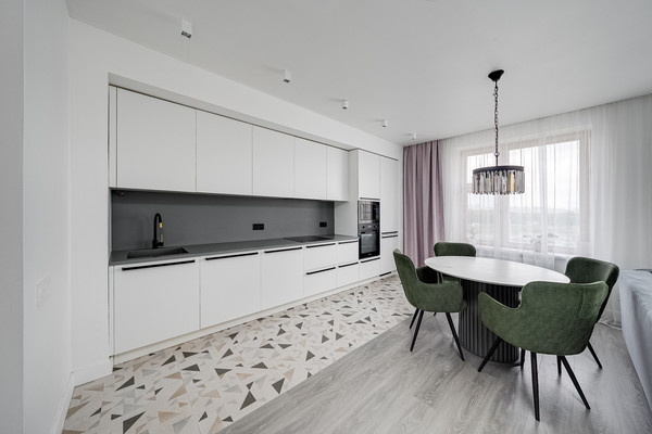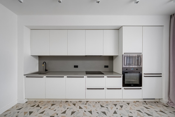 В кухне есть вся необходимая встроенная техника для комфортного проживания: посудомоечная машина, плита, духовой шкаф, вытяжка, холодильник, теплые полы;