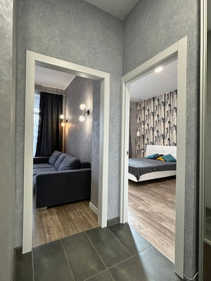 - Стильный дизайнерский ремонт с использованием качественных материалов: декоративная штукатурка, ламинат Tarkett, надёжная сантехника.