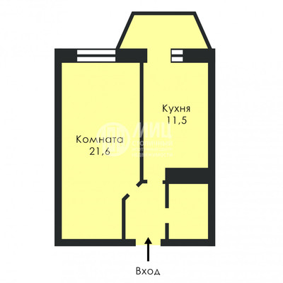 - Жилая площадь 21.6 м²