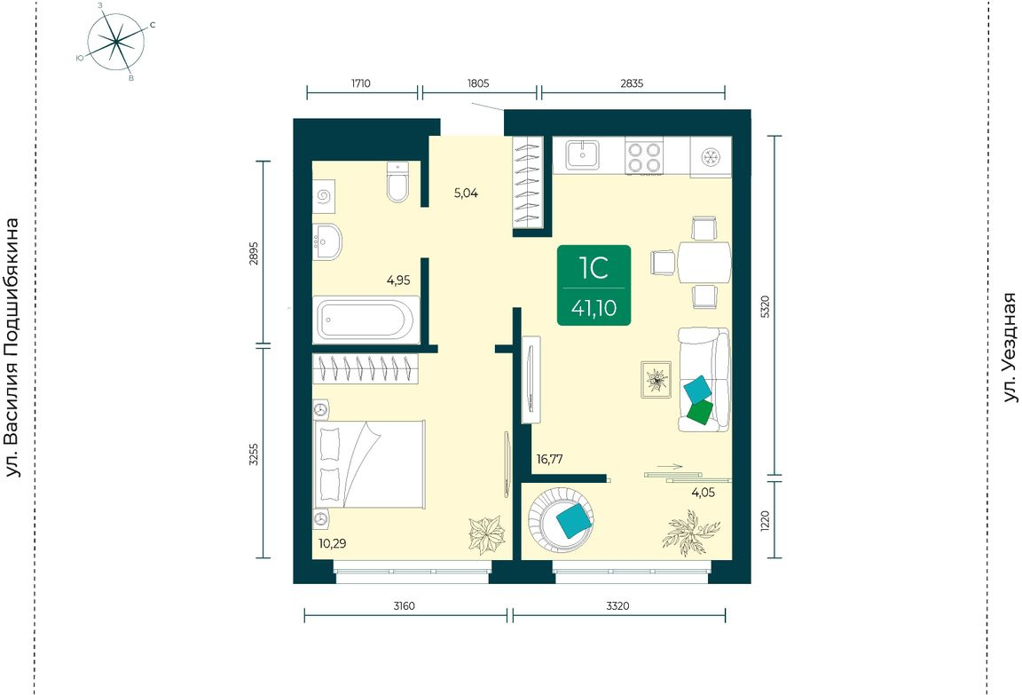 1-комн. квартира от застройщика с предчистовой отделкой в ЖК "Уездные кварталы" на 7 этаже. Общая площадь: 41.1 кв.м., жилая: 10.29 кв.м., площадь просторной кухни-столовой: 16.77 кв.м. Все окна выходят на одну сторону. В квартире одна лоджия, один совмещенный санузел. Высота потолков 2.7 м. Дом монолитный, многоподъездный, переменной этажности, от 7 до 17 этажей. Квартира находится в 5-й секции высотой 12 этажей в корпусе ГП-3. На этаже 11 квартир. В подъезде 1 пассажирский и 1 грузовой лифт. Окончание строительства - 1 квартал 2026 года. Оформление сделки по договору долевого участия. «Уездные кварталы» - семейный жилой комплекс комфорт-класса с авторской архитектурой и трехуровневым ландшафтным озеленением. Рядом расположены крупные транспортные развязки, которые позволяют добраться в любую точку города за 15 минут. Жилой комплекс находится в современном районе с развитой инфраструктурой, на первой линии Тюменской Слободы. Вокруг есть всё необходимое в шаговой доступности: новые детские сады и школы, остановки общественного транспорта, магазины, кафе и рестораны, поликлиника, детская школа искусств, парки и спортивный комплекс. На первых этажах квартала расположена собственная коммерческая сеть, а также свой соседский центр. Проект включает 5 домов переменной этажности с более чем 100 планировками - с террасами, французскими балконами и мастер-спальнями. Закрытые дворы оборудованы интерактивными площадками для игр, спортивными зонами и местами тихого отдыха. Вдоль жилого комплекса расположен пешеходный бульвар с сухим фонтаном, а для автомобилей предусмотрен теплый паркинг. Часть квартир можно приобрести с ремонтом, мебелью и техникой от застройщика, а расходы включить в ипотечный платеж. (AQID02514076)
