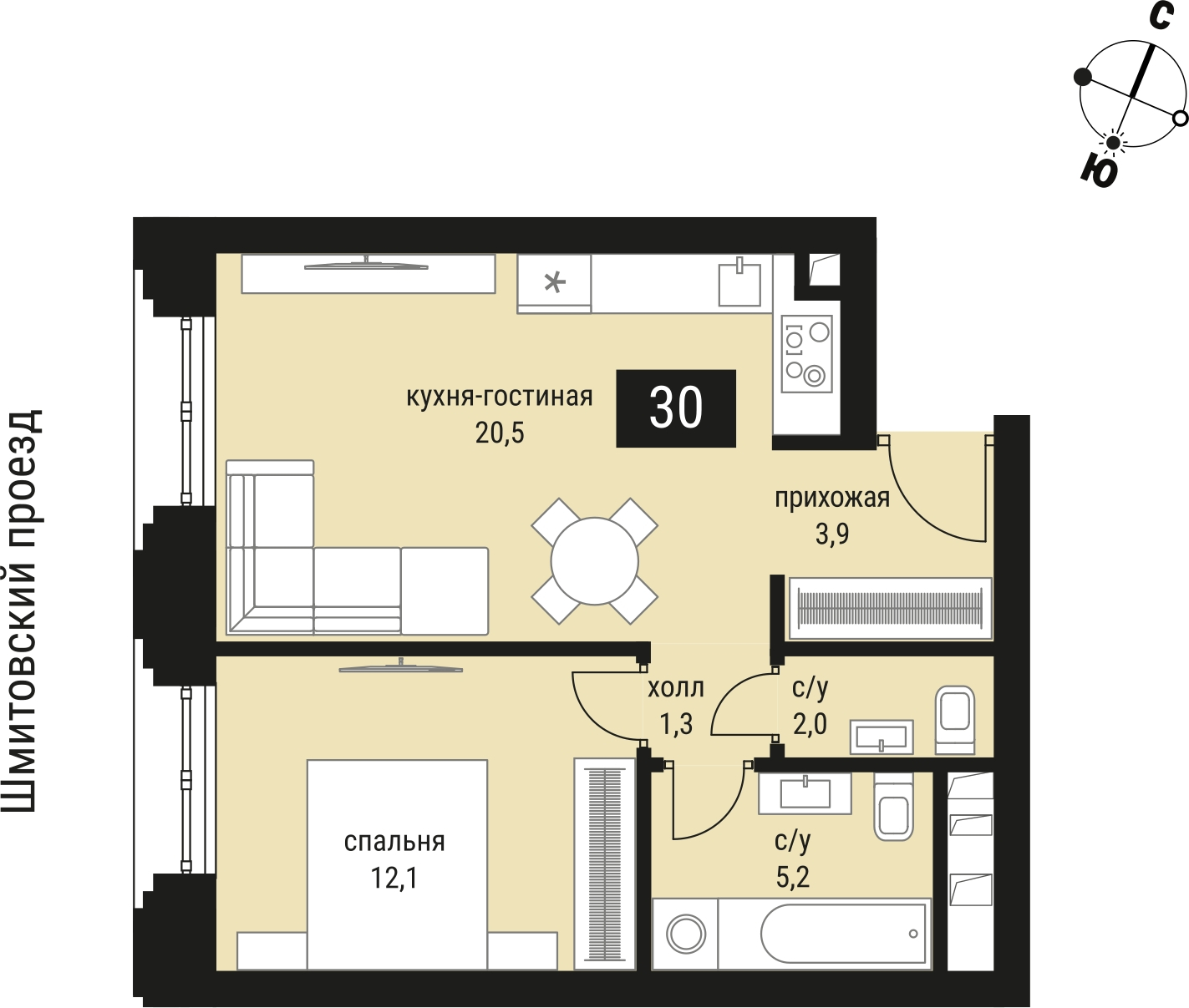 - Жилая площадь 12.1 м²