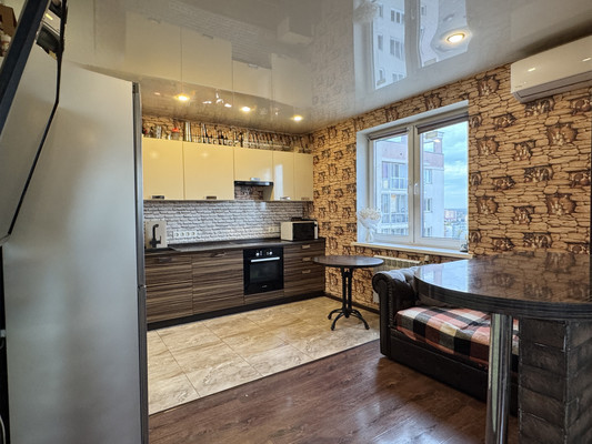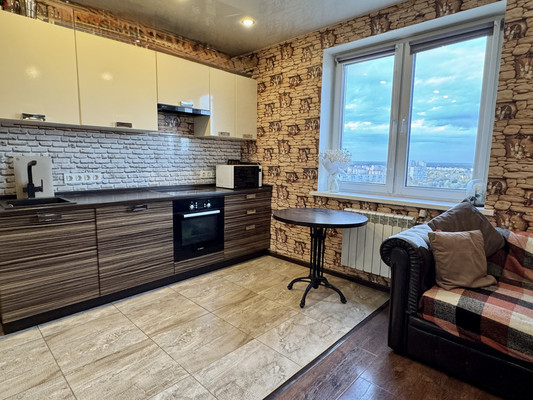 Арт. 119107942 Продается видовая 1-к. квартира по адресу г. Раменское, ул. Чугунова, 15 б на 15 этаже 18-ти этажного дома! В квартире сделан евро-ремонт. Дом монолитный построен в 2013 году в развитом районе города по высоким стандартам качества. В качестве бонуса покупателю в квартире остается почти вся корпусная мебель и кухонный гарнитур со встроенной техникой!Общая площадь квартиры 35.5 кв. м. Площадь кухни 12 кв. м. Площадь комнаты 16 кв. м, высота потолков 2.7 м. Функциональная планировка с застекленной лоджией 4 кв. м. На полу ламинат высокого класса и плитка, поклеены обои, потолок натяжной, качественная электрика, окна ПВХ.Кухня 12 кв. м с большой рабочей зоной и единой пластиковой столешницей. Качественный мебельный гарнитур, диван и встроенная импортная техника: электрический духовой шкаф Bosch, варочная панель, вытяжка и кондиционер остается покупателю. В кухонной нише можно установить стиральную машину.Просторная комната 16 кв. м с выходом на большую застекленную лоджию. Комната зонально отделена барной стойкой. Планировка квартиры позволяет полностью изолировать комнату. Здесь вы можете организовать место для отдыха или приема гостей. Двуспальная кровать и шкаф-купе остаются покупателю.В душевой качественный ремонт, сан узел выложен дизайнерской итальянской плиткой.В прихожей есть ниша для гардероба, а также имеется видеодомофон.Подъезд оборудован быстрыми бесшумным грузовым и пассажирским лифтами.Во дворе современные детские площадки с безопасным покрытием, лавочки для отдыха. Территория вокруг жилого комплекса полностью благоустроена. Здесь много уютных мест для прогулок или активных занятий спортом.В районе действуют различные объекты социальной и коммерческой инфраструктуры: МФЦ "Мои Документы", СК "Борисоглебский", ледовая арена с новым бассейном, центральная районная больница. В непосредственной близости точки питания и продуктовые магазины : "Пятерочка", "Верный", "Магнит", "Ярче"...