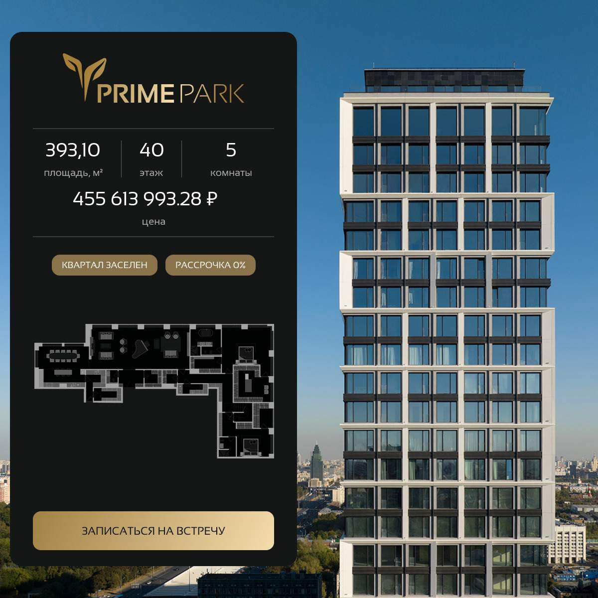 Продается 5-комн. квартира, площадью 393.1 м2 в монолитной новостройке в 12 мин. пешком от м. Динамо, район города - Хорошевский. Возможен вариант покупки с использованием ипотечных средств. Жилая площадь 172.9 м2, кухня 13.1 м2, предчистовая отделка, комнаты изолированные, окна выходят во двор. Квартира располагается на 40 этаже 41-этажного дома в ЖК Прайм Парк. Застройщик - Optima Development, сдача дома - I квартал 2021 года, дом уже сдан, высота потолков 3.1 м. Дом оборудован пассажирским лифтом. Подземная парковка, парковка охраняется. Обеспечение безопасности: консьерж. Инфраструктура: школа, детский сад, детские площадки, места для отдыха, супермаркет, рестораны, фитнес-центр. Премиальный квартал PRIME PARK стал одним из знаковых жилых проектов столицы, который задал новые ориентиры на рынке недвижимости. Он неизменно занимает лидирующие позиции по продажам в своем классе, стал рекордсменом по количеству завоеванных международных и российских премий в области недвижимости, а также был назван самым благоустроенным кварталом России на XIII Российской национальной премии по ландшафтной архитектуре. Квартал стал новой доминантой Ленинградского проспекта. Архитектор Филип Болл не только разработал концепцию бескомпромиссно роскошного жилья, но и на постоянной основе осуществляет авторский надзор. Небоскребы квартала отличаются уникальным рисунком фасадов и располагаются в отдалении друг от друга, что обеспечивает постоянный поток солнечного света и восхитительные виды из каждой квартиры. В то же время геометрия PRIME PARK продумана таким образом, чтобы создать атмосферу спокойствия и тишины на территории частного парка. 5 мин. от Тверской улицы, Патриарших прудов и Белой площади; 20 мин. до аэропорта «Шереметьево» или «Москва-Сити»; 4 парка - Ходынское поле, Петровский и Чапаевский парки, Березовая роща; 4 станции метро - «ЦСКА», «Аэропорт», «Динамо» и «Петровский парк». Аккредитованные банки: Абсолют Банк, Совкомбанк, Альфа-Банк, Банк ДОМ. РФ, Промсвязьбанк, Банк ВТБ, Россельхозбанк, МКБ. Позвоните и узнайте условия покупки прямо сейчас! [#7561265#]