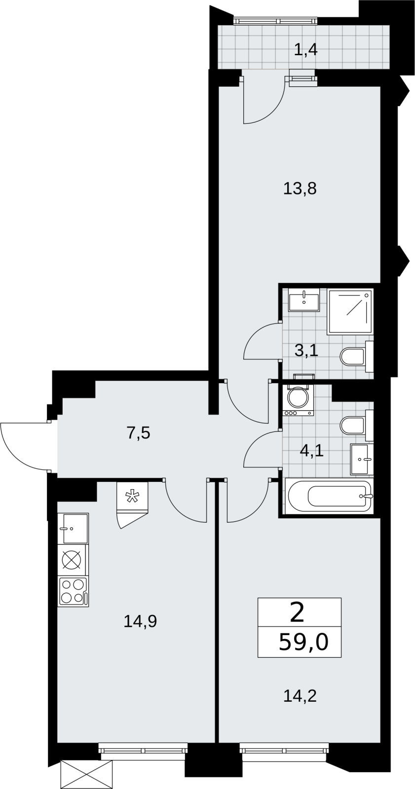 Просторная двухкомнатная квартира в ЖК "Деснаречье" на 9 этаже. Квартира без отделки, после оформления собственности можно делать ремонт. Общая площадь: 59 кв.м., жилая: 28 кв.м., площадь просторной кухни-столовой: 14.9 кв.м. Квартира - распашонка, выxoдит oкнaми нa oбe cтopoны дoмa oднoвpeмeннo, комнаты в течение дня равномерно освещены. В квартире одна лоджия, два совмещенных санузла. Высота потолков 2.95 м. Эта квартира предлагается без отделки. Будут установлены стеклопакеты с повышенной тепло- и шумоизоляцией, в квартиру заведены все коммуникации. Вы сможете в полном объеме реализовать ваши идеи обустройства вашего комфортного дома. Для тех, кто ценит время и не хочет дополнительных трат на ремонт мы предлагаем квартиры с предчистовой и дизайнерской отделкой. Дом монолитный, многоподъездный, переменной этажности, от 8 до 16 этажей. Квартира находится в 1-й секции высотой 14 этажей в корпусе 7.1. На этаже 5 квартир. В подъезде 1 пассажирский и 1 грузовой лифт. Начало строительства - 2 квартал 2025 года. Окончание строительства - 1 квартал 2028 года. Оформление сделки по договору долевого участия. Артикул квартиры по базе застройщика 88К-7.1-40. ПРЕДЛОЖЕНИЯ ОТ ЗАСТРОЙЩИКА В ОКТЯБРЕ 2025: Ипотека от 13,9 % для всех! На весь срок. "Семейная ипотека" вернулась. Ставка от 3,5 % на весь срок! Без удорожания! Выгодное ипотечное комбо: Ипотека от 2200 р./мес. и от 6 % после рождения ребёнка! Ипотека для всех "Держи пять!" - ставка 5 % на 2 года! *более подробную информацию по скидкам и акциям уточняйте в отделе продаж Масштабный проект "Деснаречье" на юго-западе Москвы, который включает три новых района («квартала»), объединённые общей идеей – воплотить в реальность мечты современных жителей столицы об интересном, комфортном и разноплановом городском пространстве в окружении рек и лесов, словно сошедших с полотен русских живописцев: - «Берег» оценят все, кому близка водная стихия: плеск волн, солнечные блики и прогулки вдоль тихого течения речи. - «Лес» утопает в зелени парков и лесов. Здесь соблюдён идеальный баланс загородного спокойствия и столичного комфорта. - «Парк», самый энергичный и яркий, отличается высокой концентрацией пространств для спорта и творчества. Жилой комплекс "Деснаречье" расположится в 12 км от МКАД по современному Калужскому шоссе. Внешний облик зданий соответствует современному стилю и стандартам, характерным и для других популярных проектов ГК «А101»: сочетание контрастных тонов, большое количество остекления, в котором отражается небо, гармония с природным окружением. Весь город - в вашем районе. Находиться на территории «15-минутного города» значит иметь всё необходимое для полноценной жизни в шаговой доступности. Маршруты в районе «Деснаречье» выстроены так, чтобы добраться до магазинов, парков, школ, салонов услуг и других объектов можно было всего за несколько минут пешком или на велосипеде. Двор закрытый от машин – это тишина, комфорт и безопасность, поэтому все машино-места (включая «семейные» и увеличенные, с возможностью установки роллетных шкафов) находятся в подземном паркинге. В паркинги можно спуститься на лифте из любого подъезда или по лестнице. Рядом с «Деснаречьем» в 2027 году планируется открытие станции метро «Десна», до которой будет удобно добраться пешком или на велосипеде. Дорога на автомобиле до перехватывающих парковок станций «Ольхов