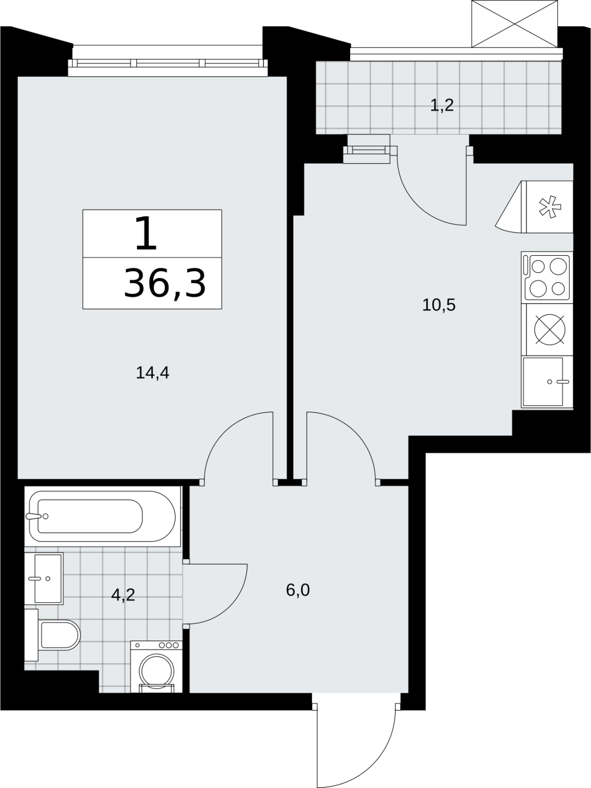 - Общая площадь 36.3 м²