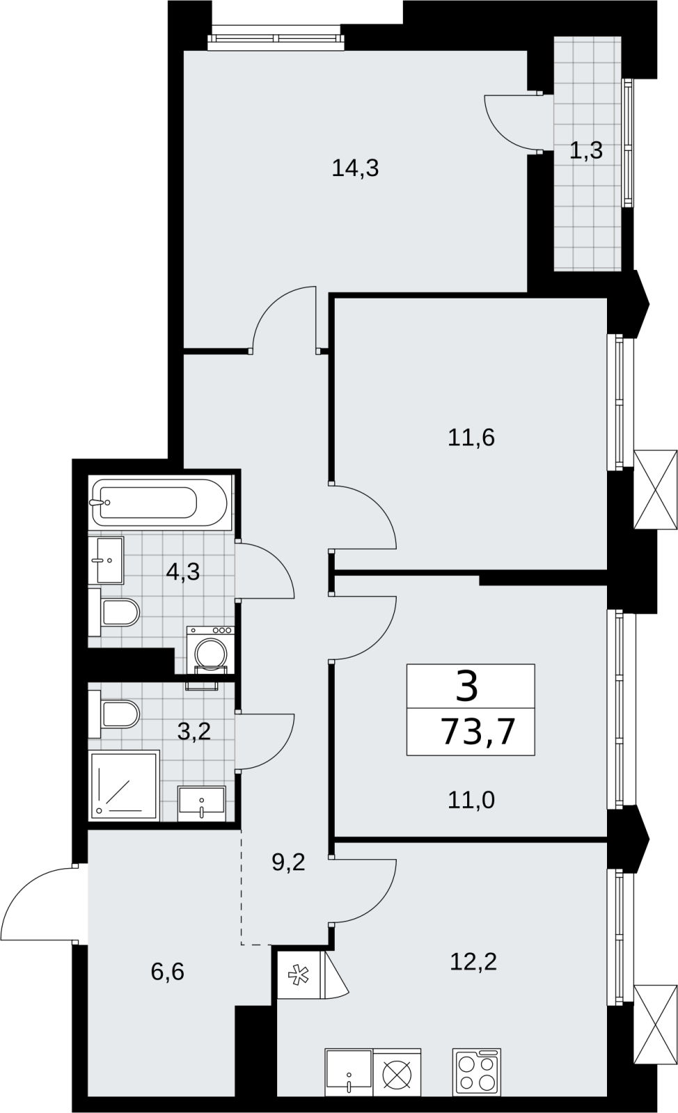 - Общая площадь 73.7 м²