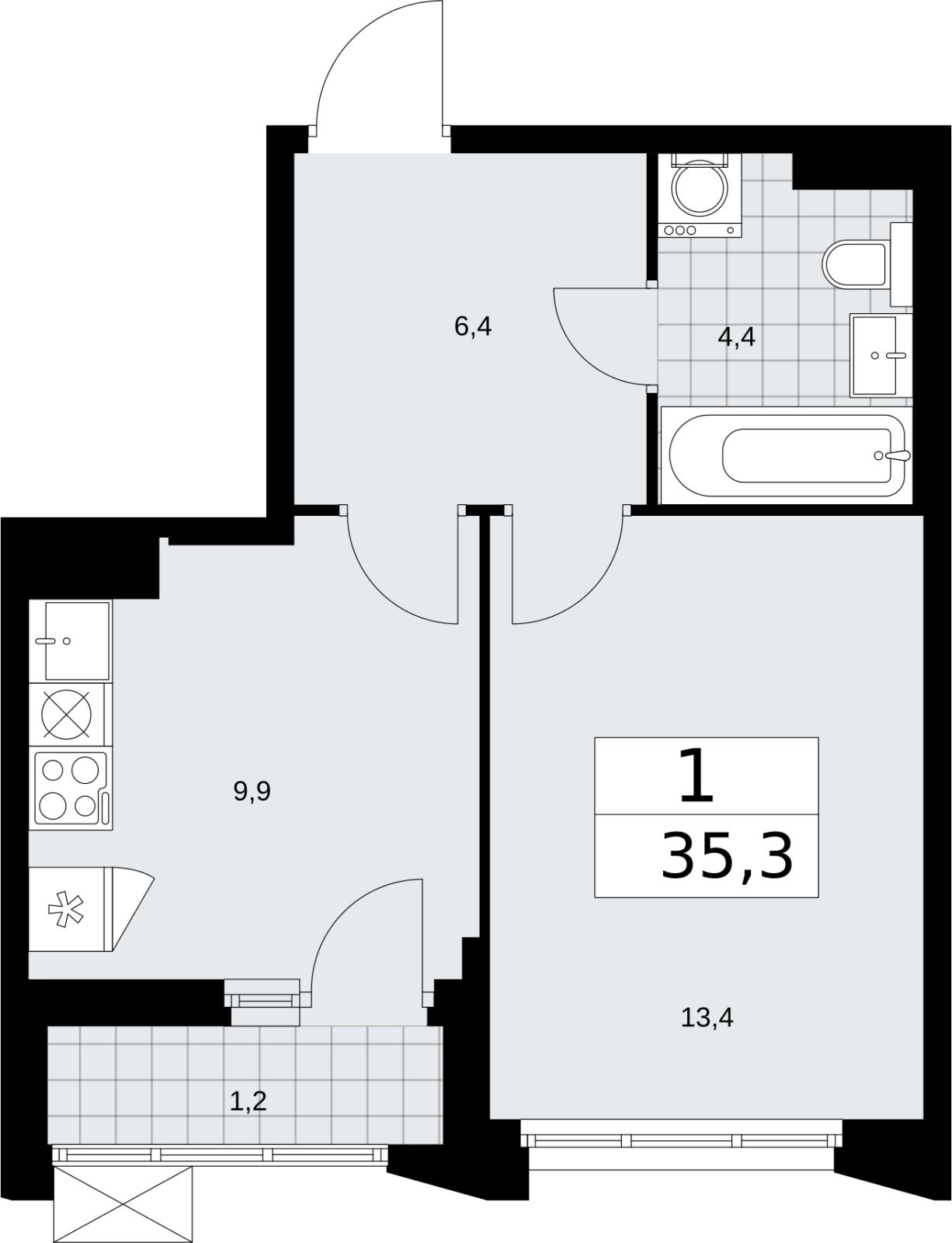- Общая площадь 35.3 м²
